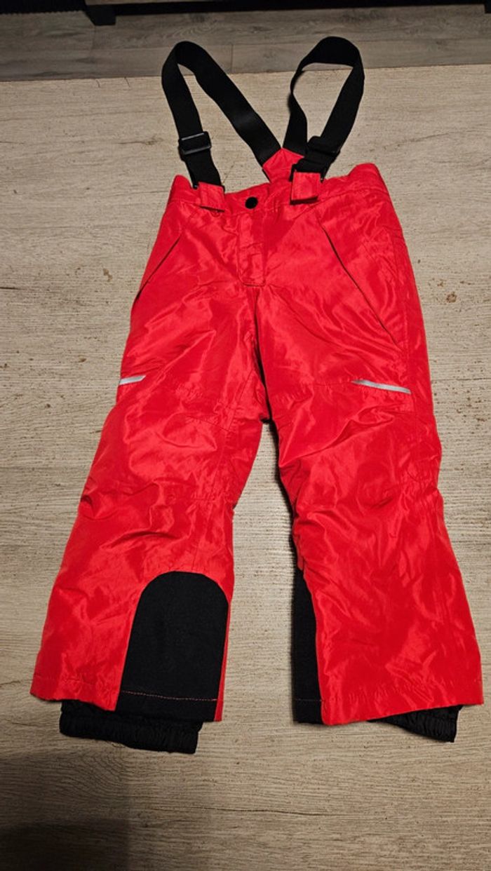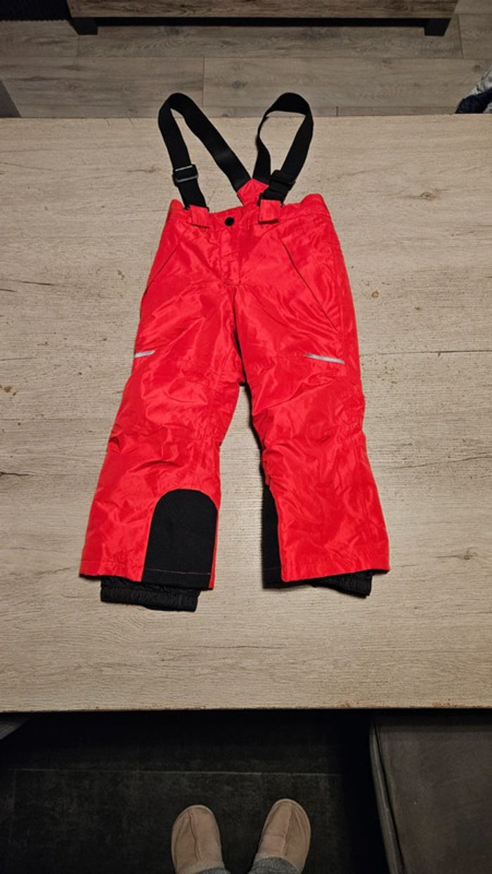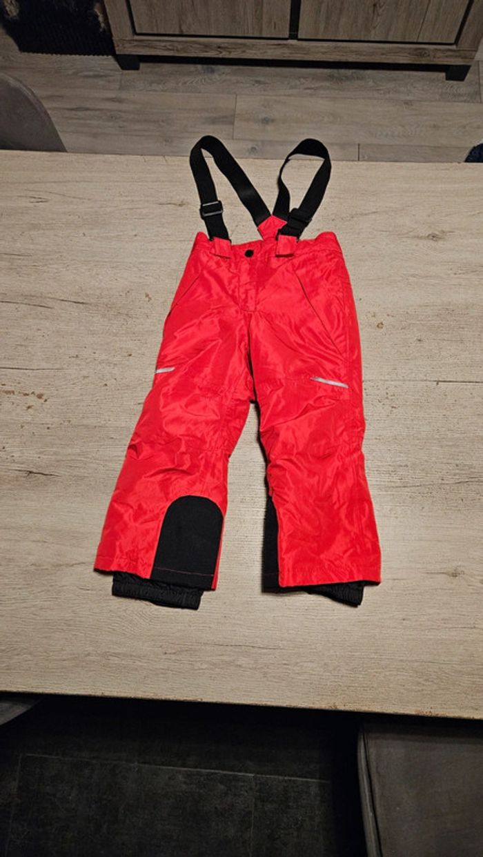 Pantalon de ski en parfait état car mis qu une fois. Il y a des bretelles mais qui peuvent s enlever. Poches qui se ferment avec une tirette. Le pantalon se ferme avec une pression et 1 tirette. Passants pour une ceinture. Bandes réfléchissantes. Acheté 25 € l année passée Convient bien pour du 3 ou 4 ans #deborahtock_ski #deborahtock_3ans #deborahtock_4ans