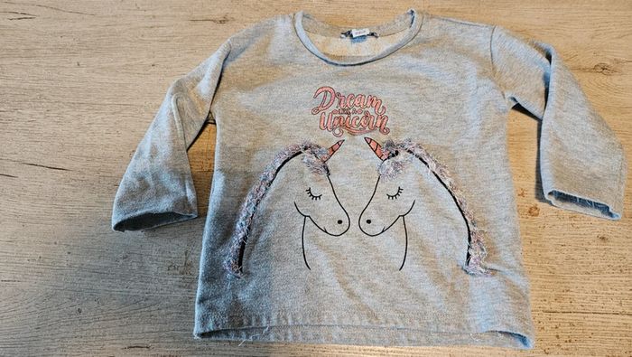 Pull gris à manches longues avec licornes, Primark, 2/3 ans mais grand