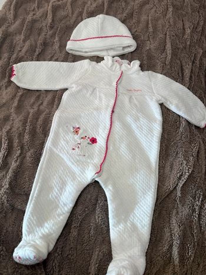 Pyjama lapin fleuri bonnet  6 mois - photo numéro 1