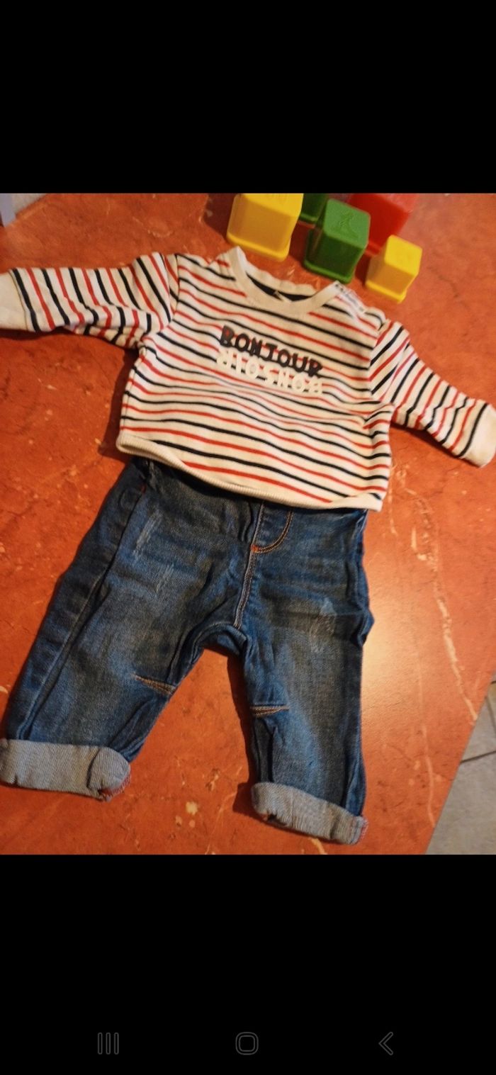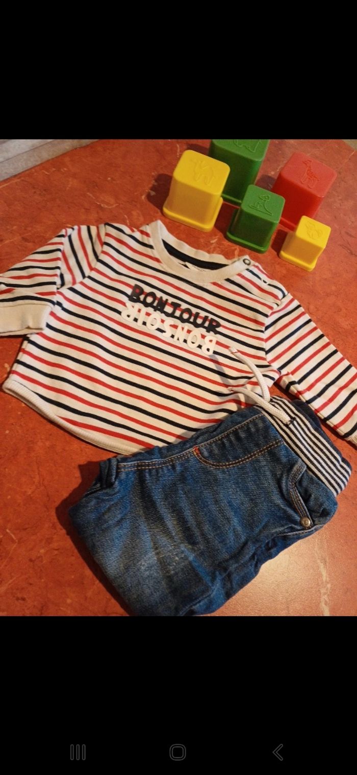 Ensemble comprenant un sweat léger avec pressions à l encolure et un jean avec cordon à la taille.