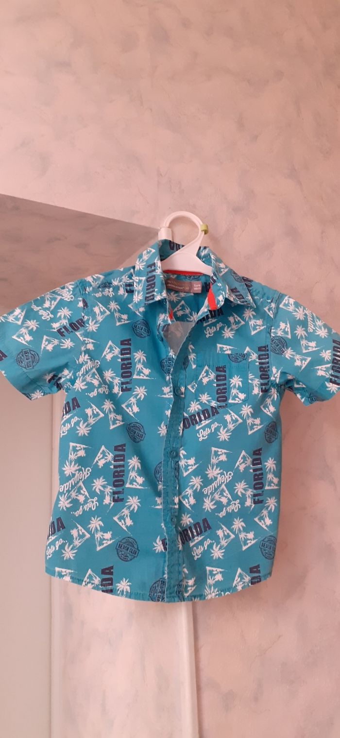 Vends une chemise manches courtes en coton bleue avec palmiers blancs Orchestra 5 ans