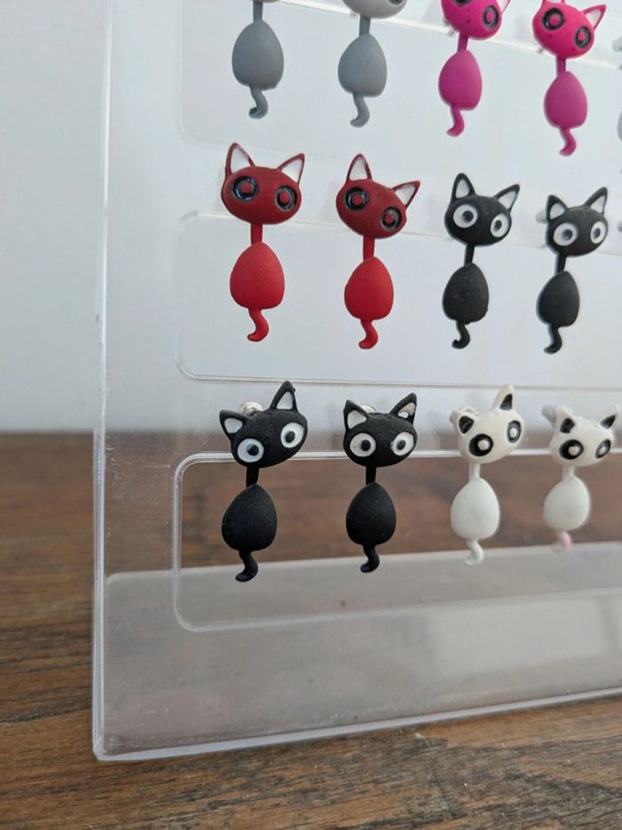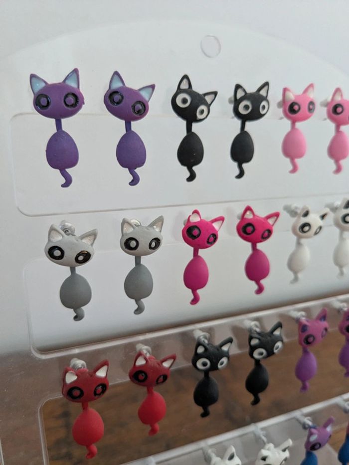 Boucles d'oreilles chats 2,99€ la paire 5,79€ les 2 21,99€ les 12
