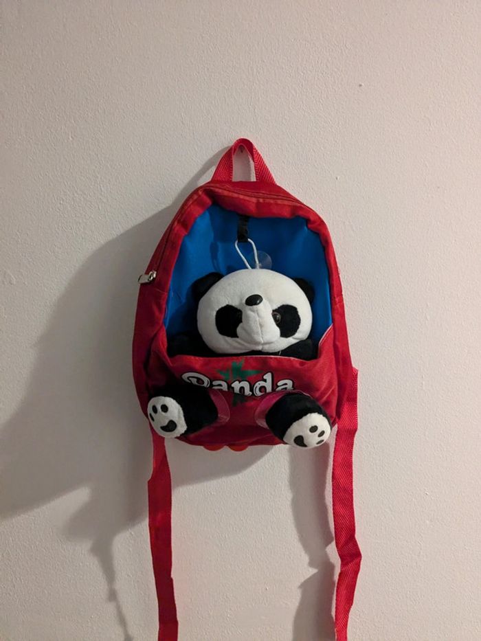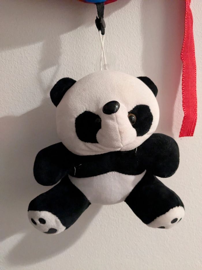 Doudou sac panda Le doudou se retire Il est aussi équipé d'un ventouse pour l'accrocher a une fenêtre