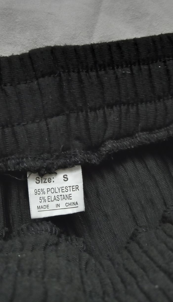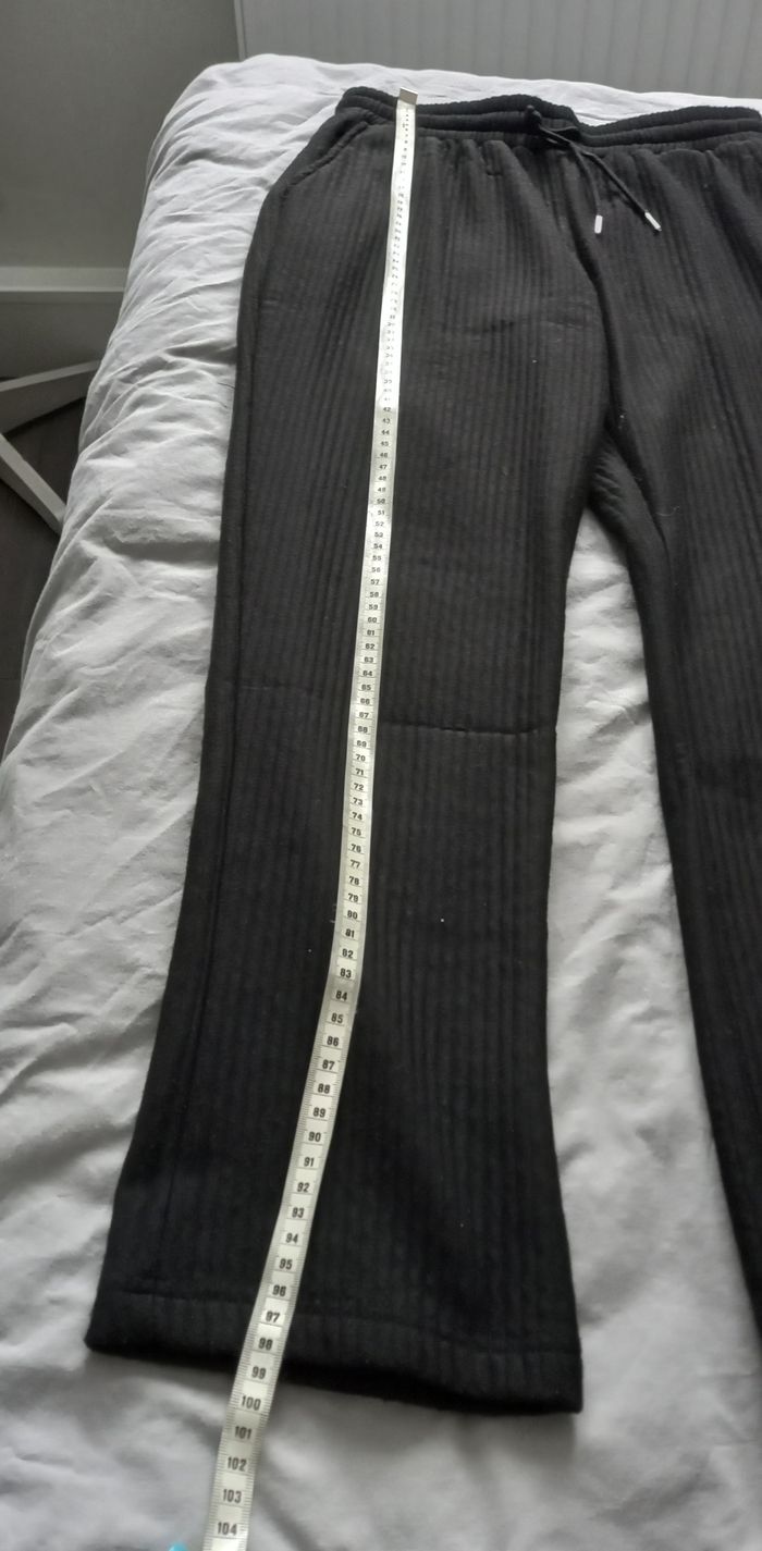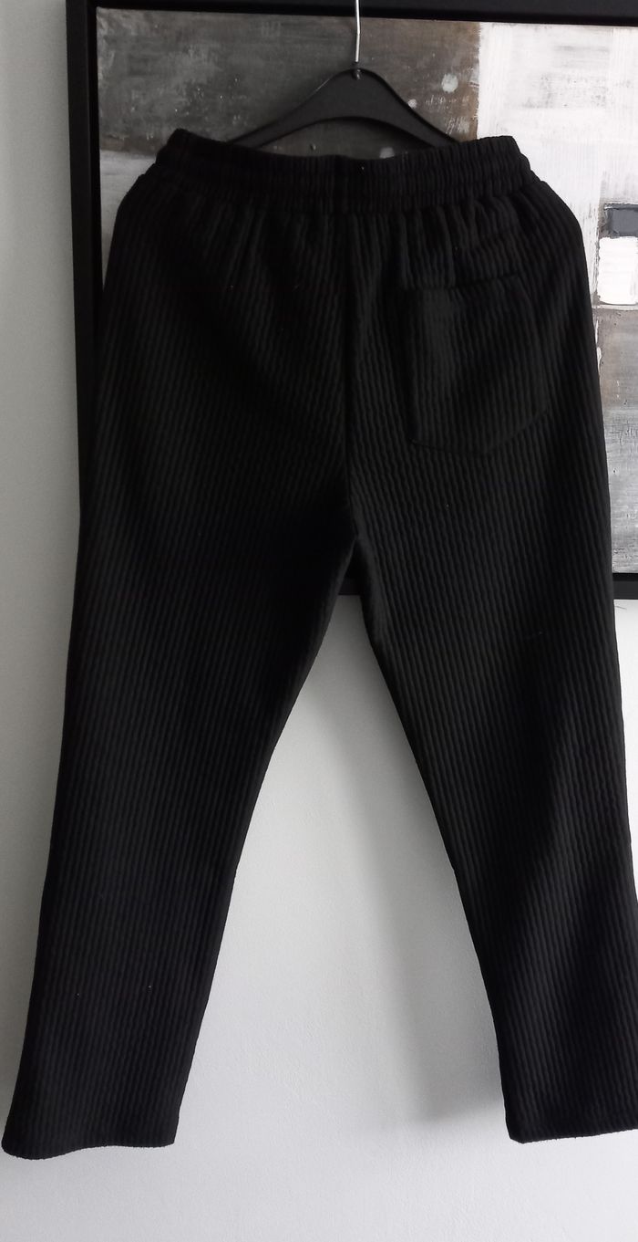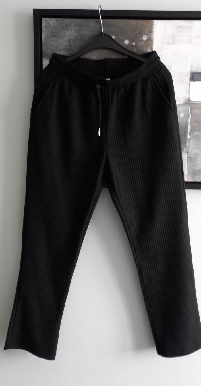 Pantalon jogging noir 95 % polyester 5 % elasthanne Tissus effet côtelé 2 poches coté 1 poche arrière Neuf jamais porté Longueur 100 cm Taille S #homme_imoddeco #T36_imoddeco