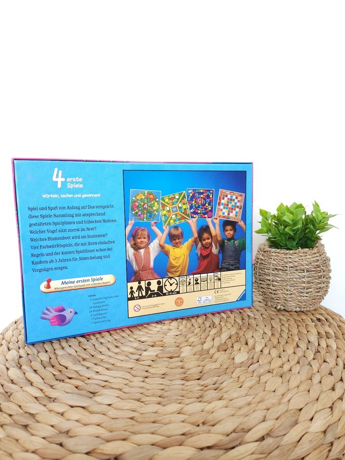 🎲 Jeu de Dés 4️⃣ Erste Spiele 🇩🇪 Ravensburger 🎲 🖊 ÉTAT ✅️: Neuf 🆕️ - Jamais utilisé - Dans son carton d'origine 📦 ⚠️ Jeu en Allemand 🇩🇪 ⚠️ 🖊DESCRIPTION🎲: ■ Objectif: Lancez les dés 🎲, courez & gagnez 🏆 ■ Contenu✅️: 2️⃣ Plateaux de jeu double face - 2️⃣0️⃣ Fleurs colorées 🌸🌼 - 2️⃣4️⃣ Cartes illustrées 🃏 - 6️⃣ Pièces de jeu - 1️⃣ Dé de couleurs 🎲 ■ 2 - 6 Joueurs 🧑‍🧑‍🧒‍🧒 ■ Age 📅: 3️⃣ à 7️⃣ ans 📕