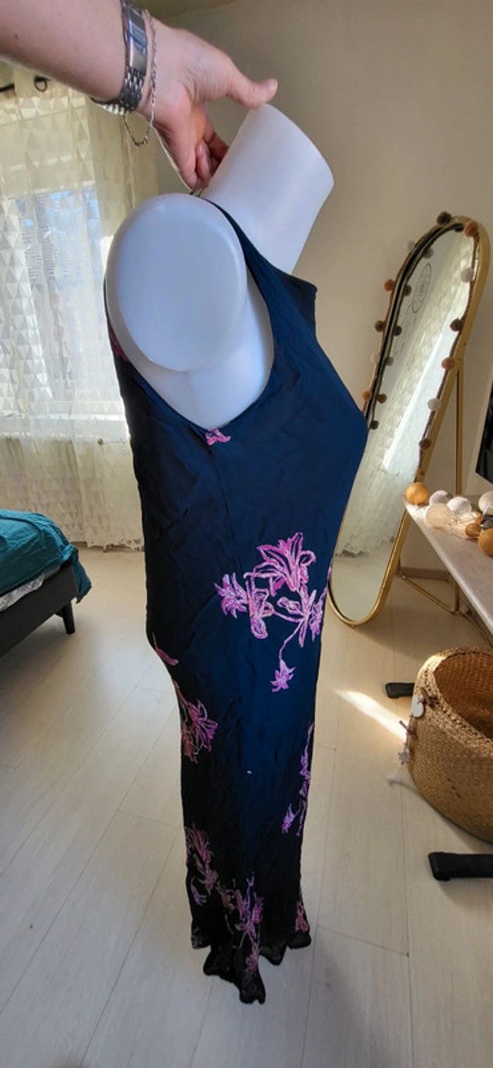 ⭐️ Bien lire l'annonce 🙂 Robe en voile entièrement doublée Bleue marine avec motifs Fleurs brodées 🌸 roses et violettes Il n'y a plus d'étiquette donc je vous ai mis les mesures : -Épaules 32cm -aisselles 47cm -taille 47cm -Longueur 129cm 42 à 46... ⭐️-20% sur les lots.⭐️ #Taille42sab01100 #Taille44sab01100 #Taille46sab01100 #Grandestaillessab01100