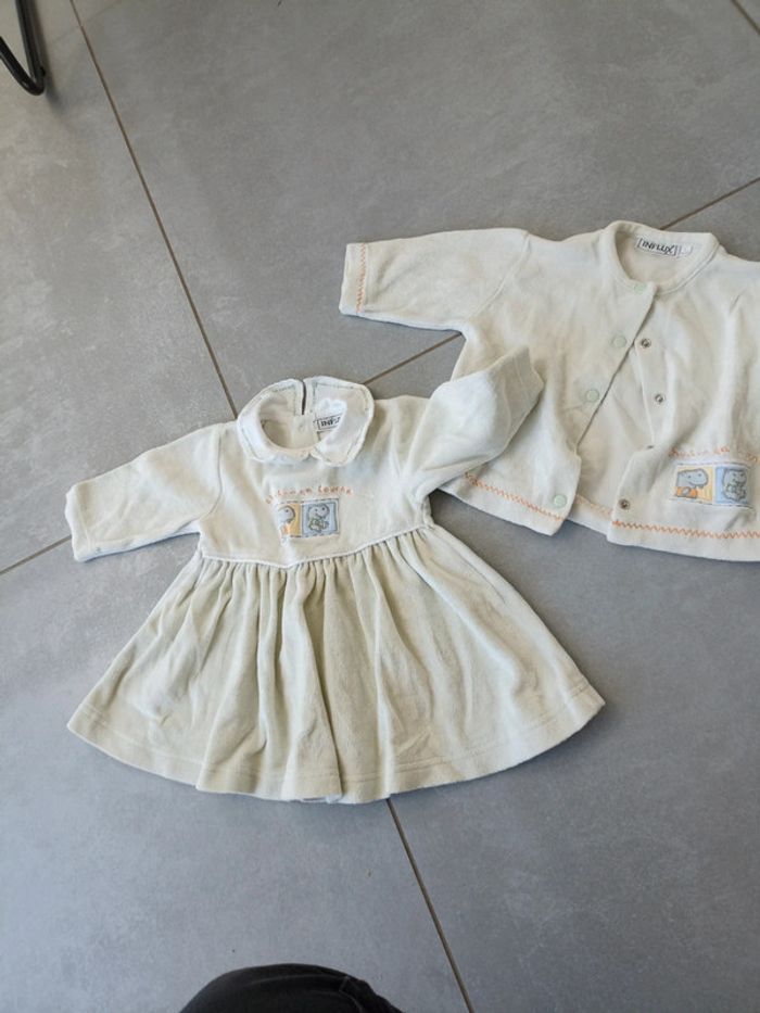 Très joli ensemble vert clair, robe et veste. Retrouvez d'autres annonces de cet âge en cliquant sur #3moismadie57 N'hésitez pas à faire un lot, j'ai besoin de place! #3mois #3moisfille #bébé #bb #bebefille3mois #bébéfille