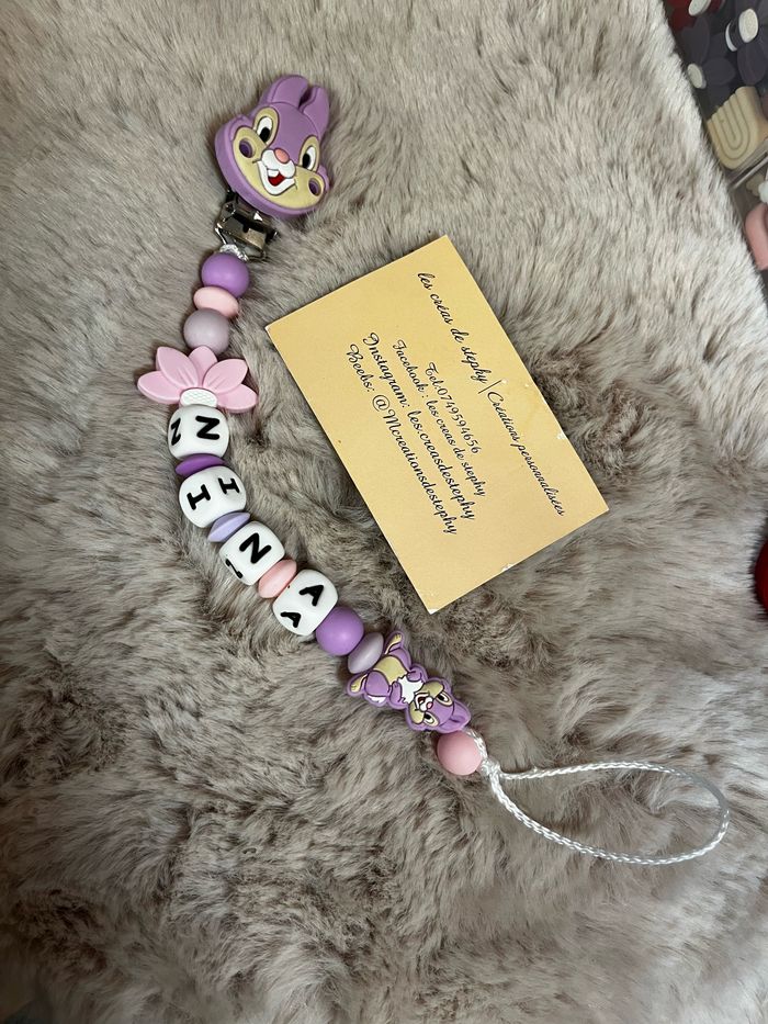Pour passer commande il suffit de valider le paiement sur l’annonce du modèle désiré et de m’envoyez le prénom de l’enfant par message que je puisse réaliser votre commande A partir de 2 articles vous bénéficiez de 5% de réduction 🥰 Réalisation dans la journée et envoie dès le lendemain Attention l’adaptateur tétine mam et en supplément à 1€ Une petite photo du modèle terminé et toujours envoyez que vous puissiez vérifier ☺️