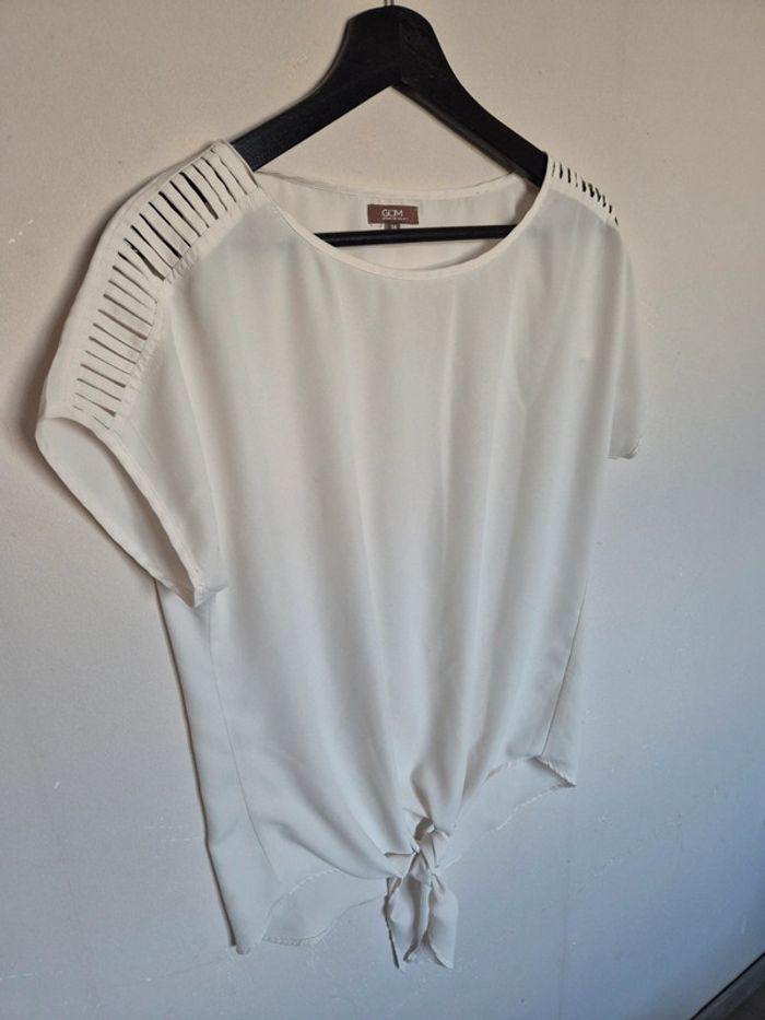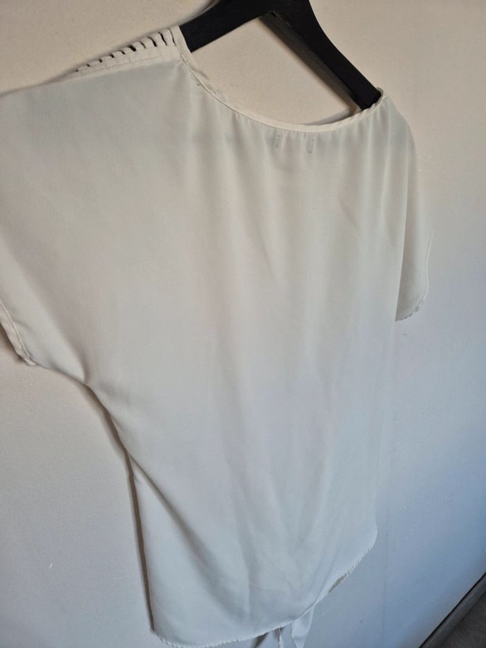 📌 Lot 20% de remise pour l'achat de 5 articles, suite ... Blouse blanche, manche courte, ajouré sur les épaules, lien à nouer sur le devant, très fluide, non transparent avec un soutien gorge nude , ➡️Largeur à plat sous les bras  49 cm ➡️Longueur 61 cm ➡️ Viscose ou polyester ⭐ Excellent état ✈Envoi rapide des colis 💗 Abonnez vous à mon profil, nombreux articles ajoutés régulièrement ! 🌸 Tapez Laetitresors pour voir mes annonces #laetitresors_blouse38 #blouse #grain #malice #blanc #manche #courte #voile #lien #nouer #ajouré #epaule #laetitresors
