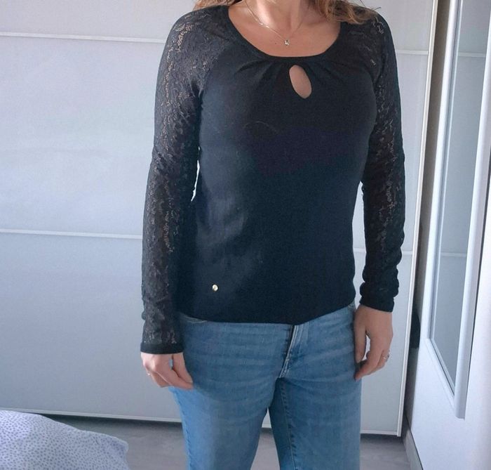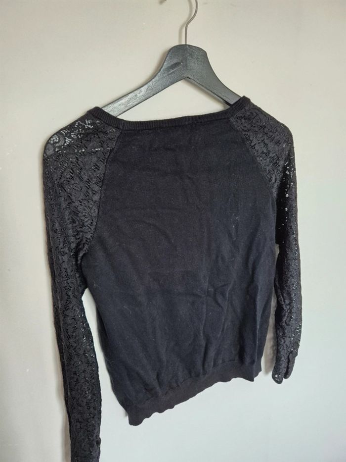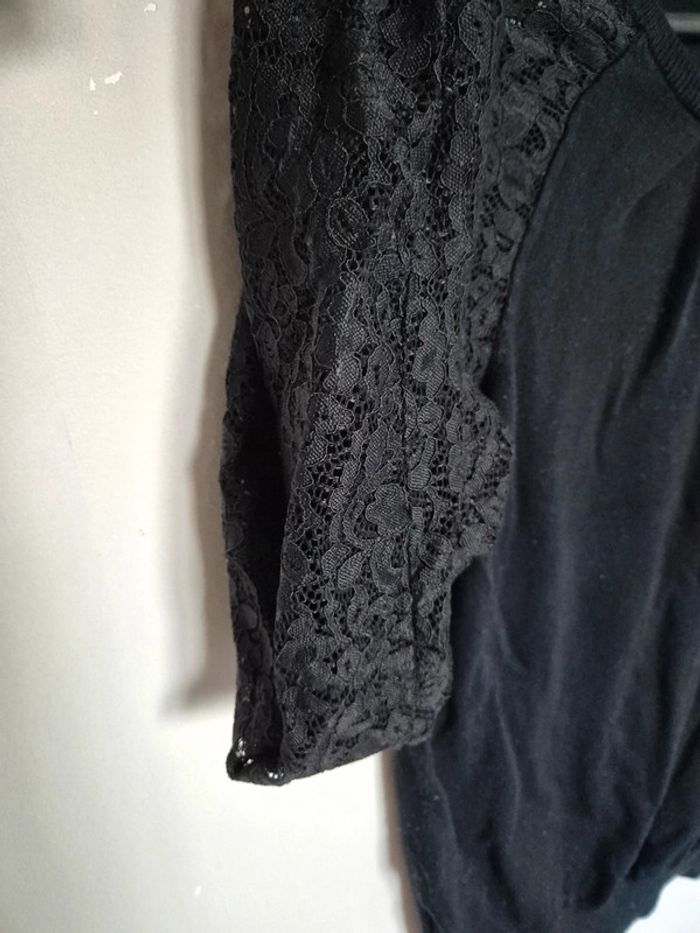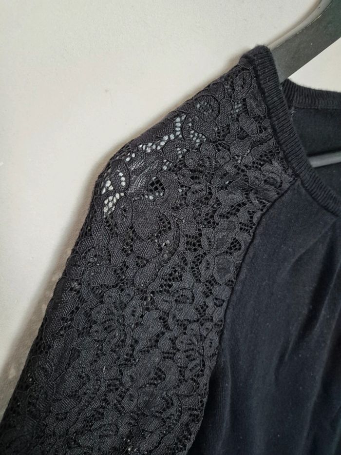 📌 Lot 20% de remise pour l'achat de 5 articles, suite ... Pull noir, avec de la dentelle sur les manches, légère ouverture sur le devant, ➡️Largeur à plat sous les bras  44 cm ➡️Longueur 59 cm ⭐ Excellent état ✈Envoi rapide des colis 💗 Abonnez vous à mon profil, nombreux articles ajoutés régulièrement ! 🌸 Tapez Laetitresors pour voir mes annonces #laetitresors_pull36 #pull #promod #noir #dentelle #manche #longue #uni #rond #ajouré #laetitresors