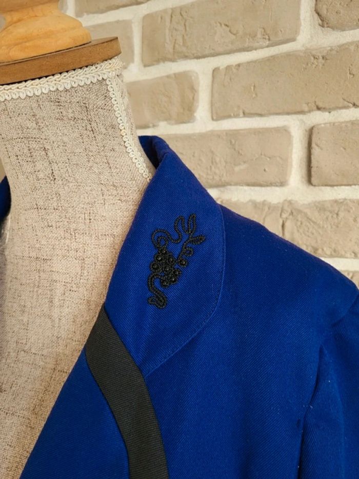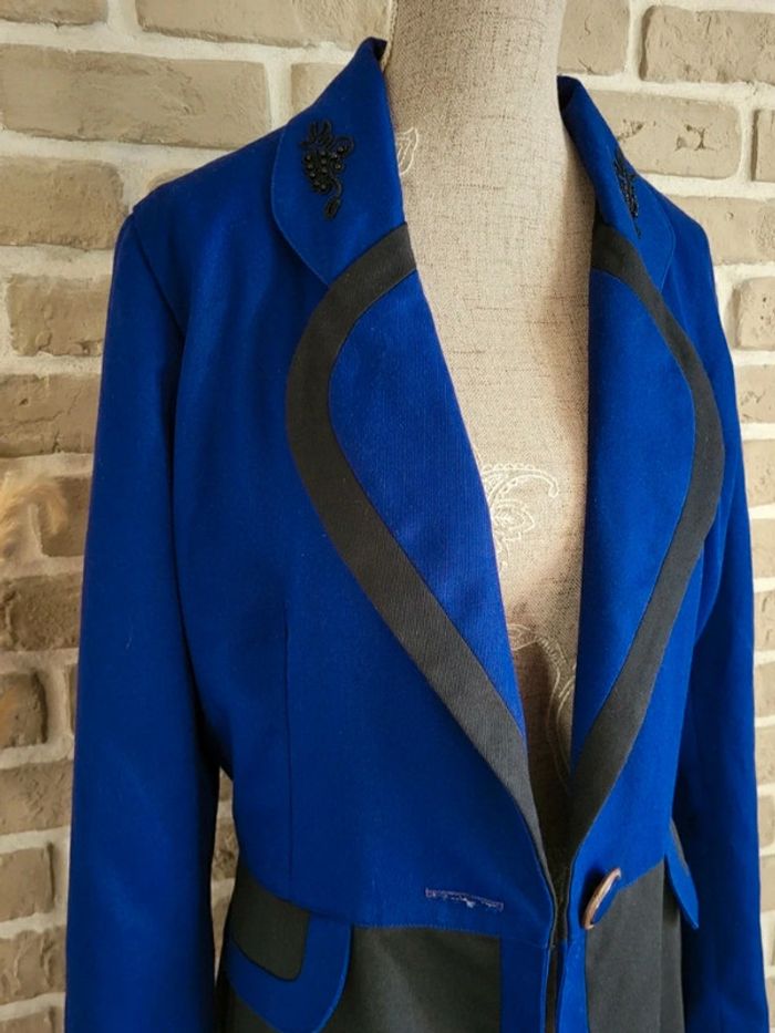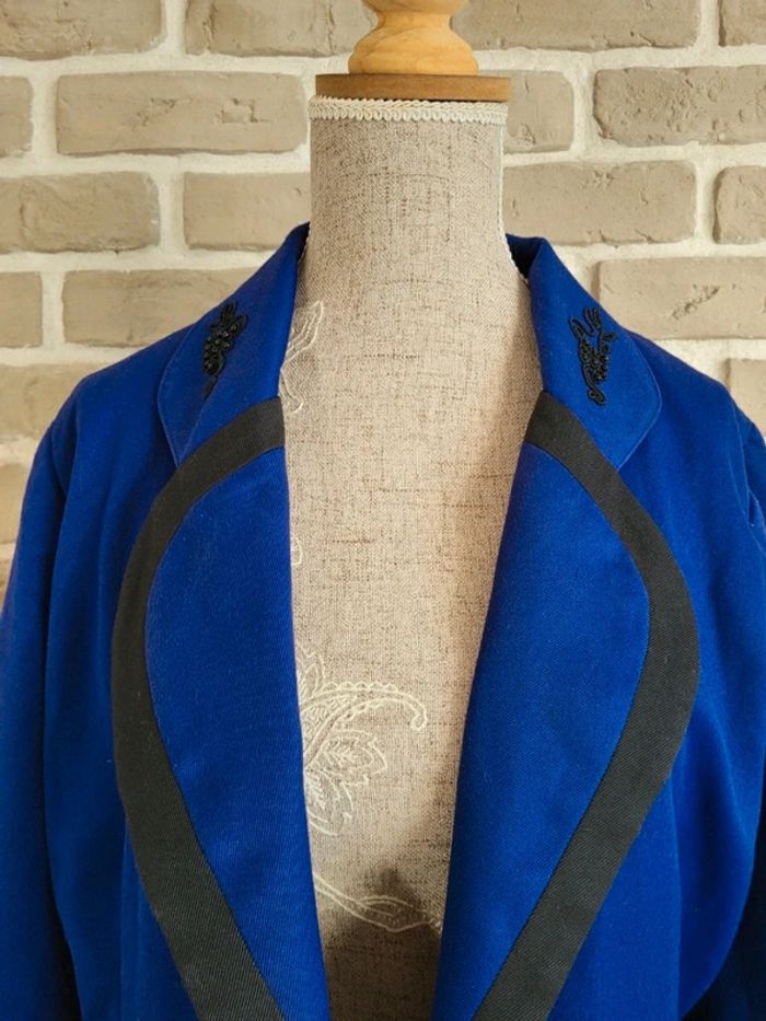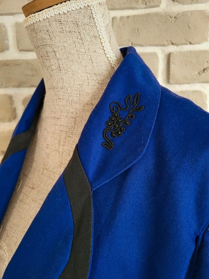 Veste longue Vintage fabriquée en France - Perles et broderies bleu & noir - photo numéro 7