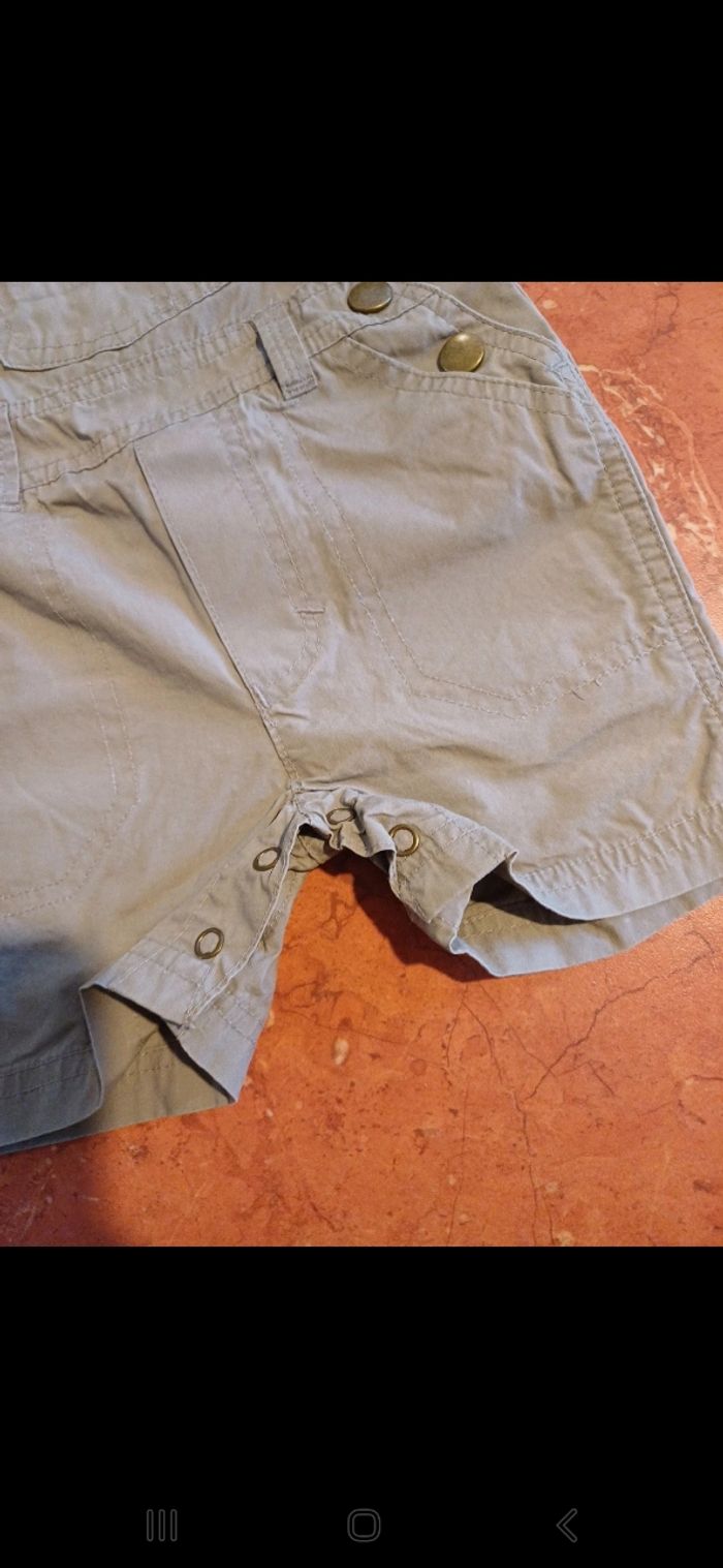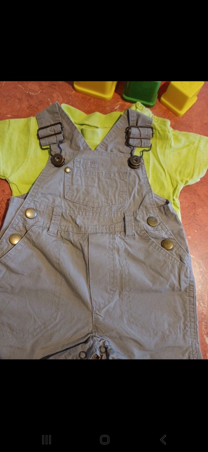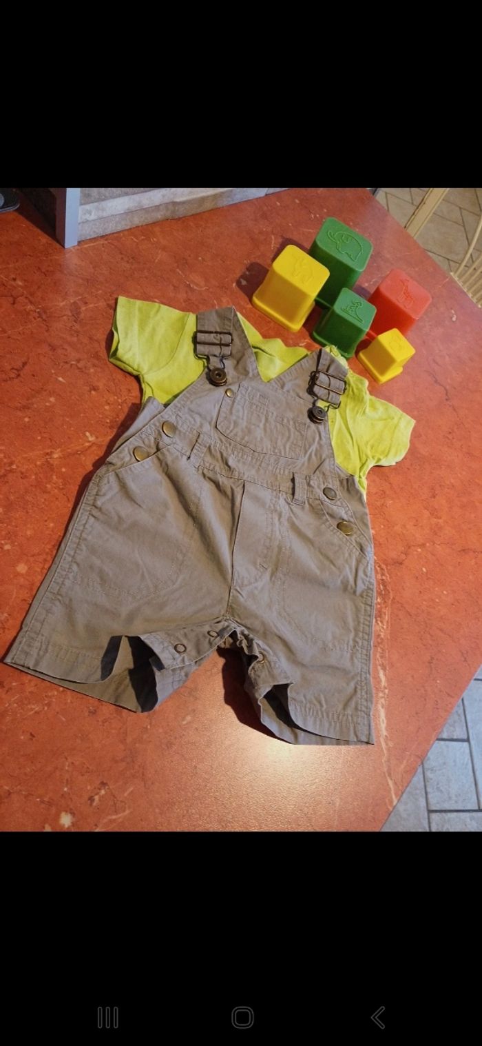 Ensemble comprenant un t.shirt manches courtes boutonné à l encolure et une salopette courte.