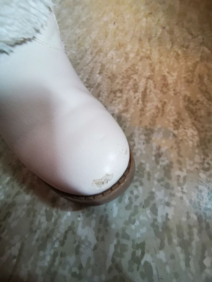 Bottines filles Porte souvent Une bottine est abîmé sur le bout et à l'intérieur.