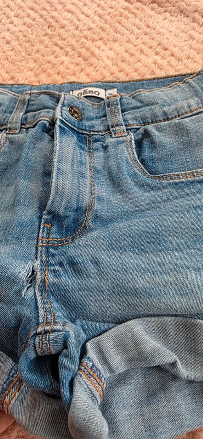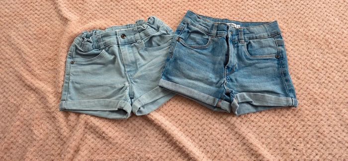 Lot de deux shorts en jeans. Ils ont chacun leur petits défauts (voir photos) mais reste en bon état. Une petite tâche légère et un trou pour l'autre. N'hésitez pas à me contacter si vous souhaitez plus de renseignements ou de photos pour