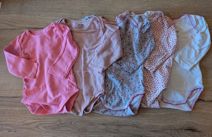 Lot de 5 bodies toutes marque, Kiabi, tape à l'oeil, tout petit et sans marque. Très bon état.