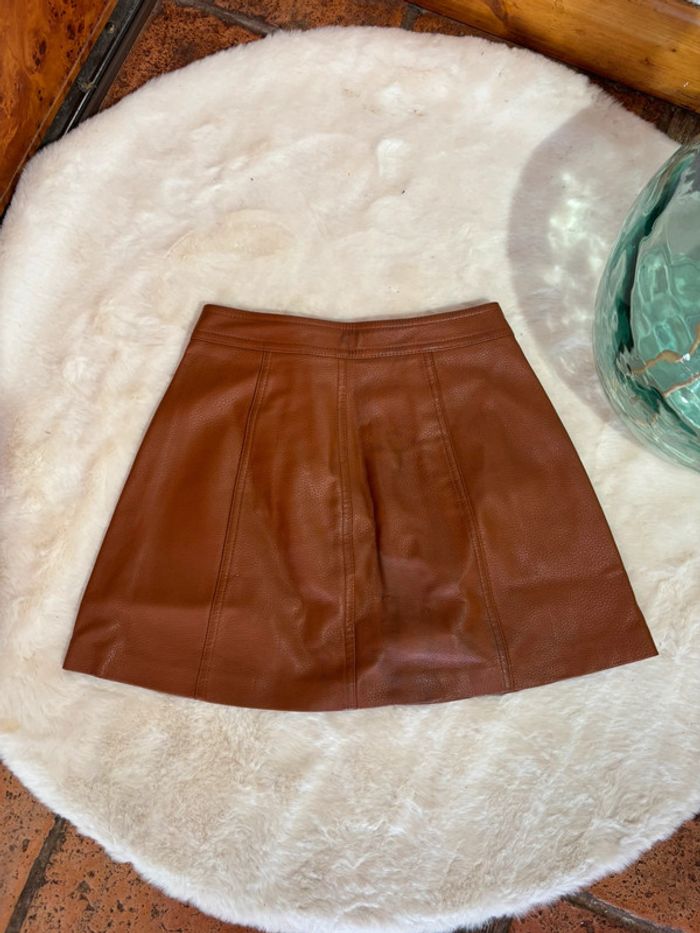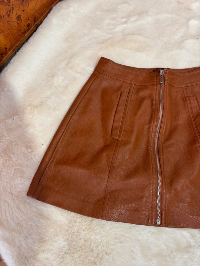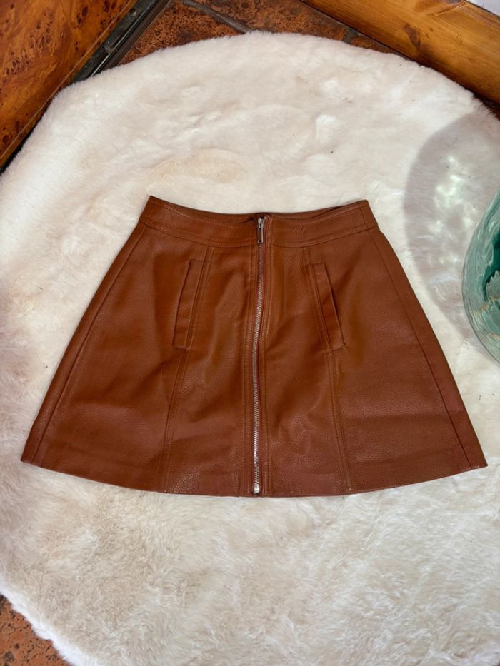 Superbe jupe en simili cuir camel Bershka | Taille XS | Fermeture éclair - photo numéro 2
