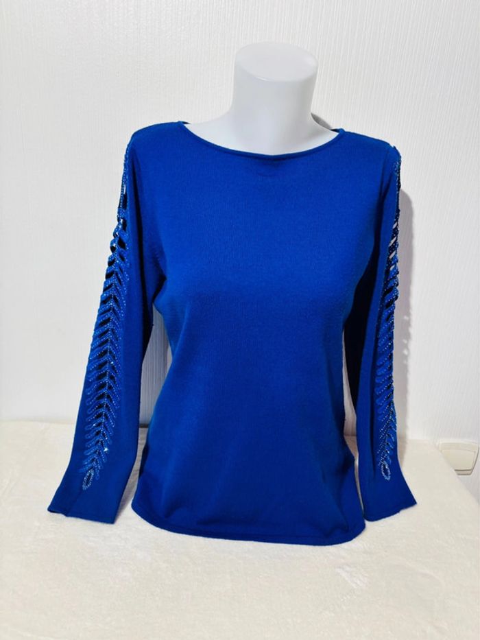 Pull bleu Alessa W. manches ajourées – Taille 38 - photo numéro 1