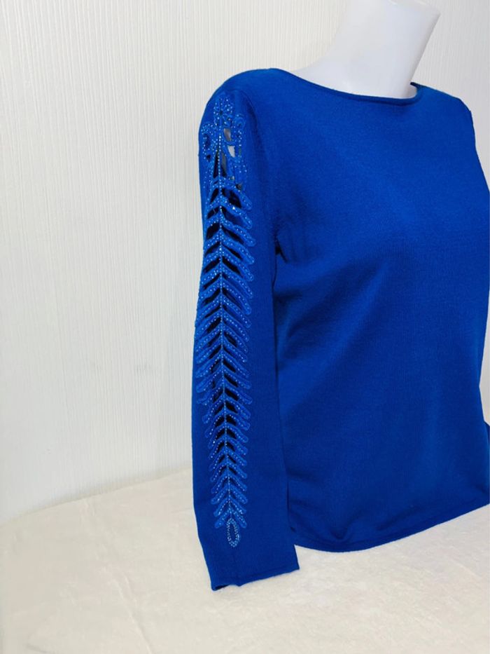 Pull bleu Alessa W. manches ajourées – Taille 38 - photo numéro 4