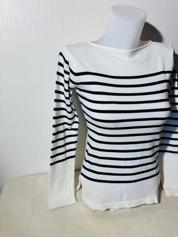 Pull marinière femme blanc et noir - Taille M - photo numéro 3