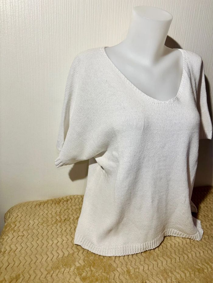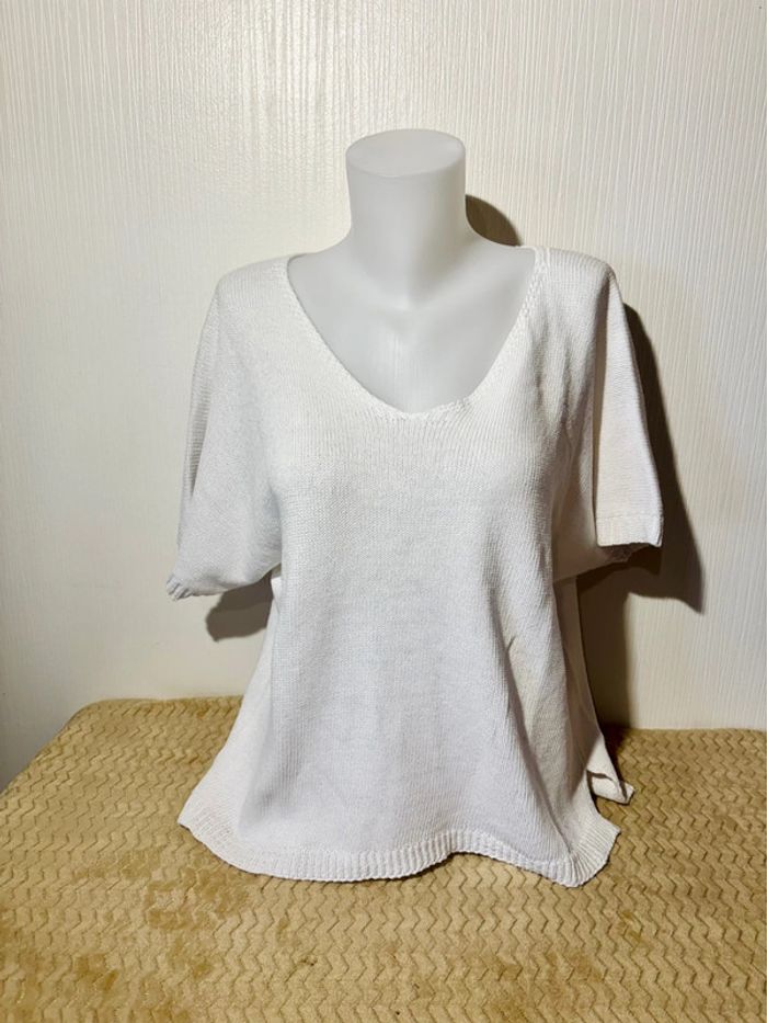 🤍 Pull blanc col V manches courtes - Taille ample - photo numéro 1