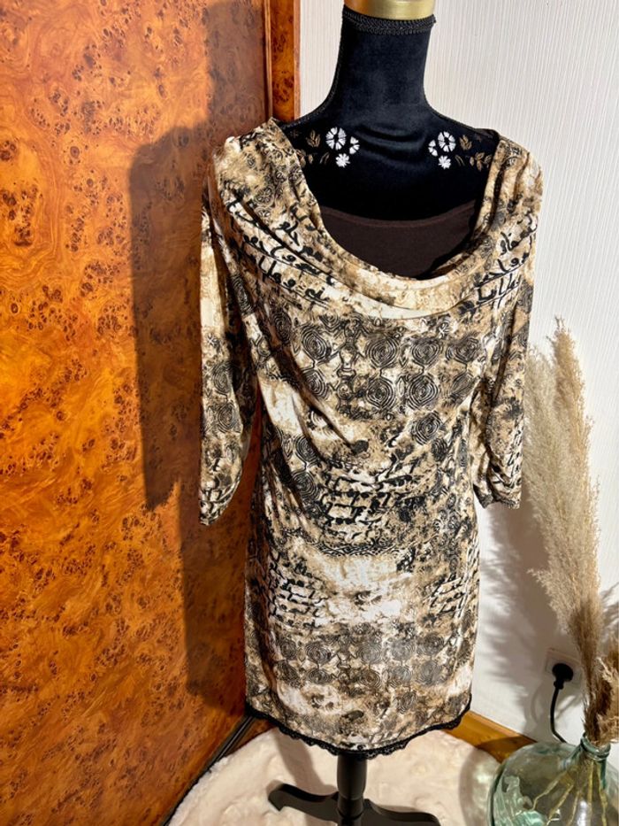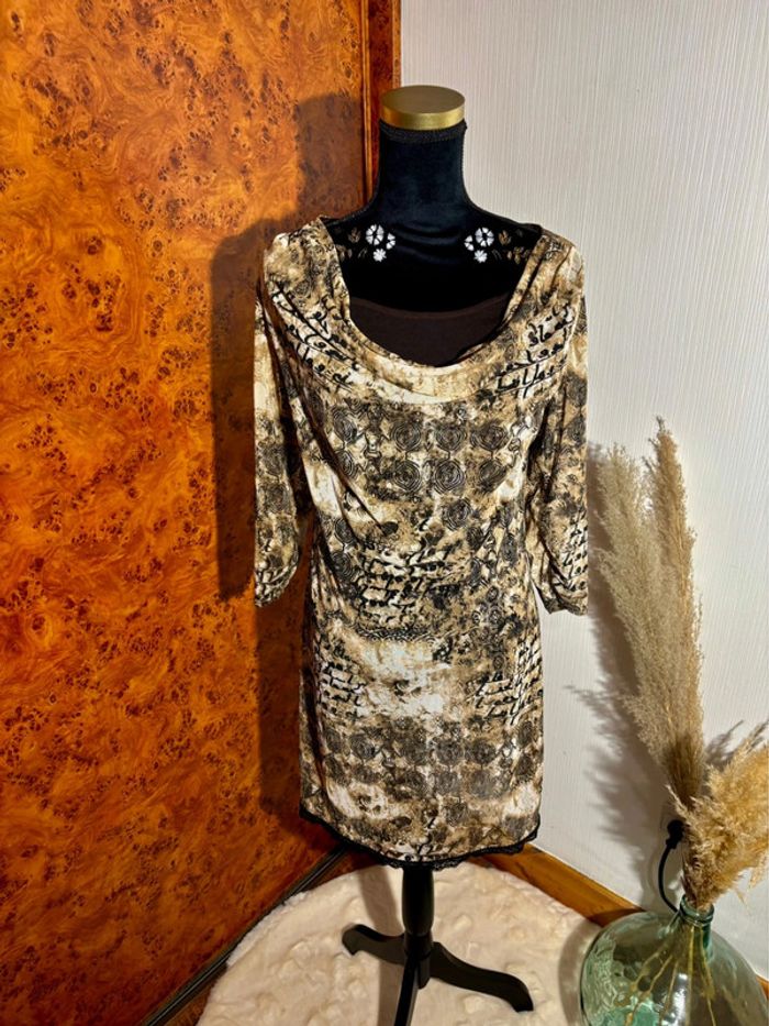 Robe vintage femme marrons imprimée taille M - photo numéro 2