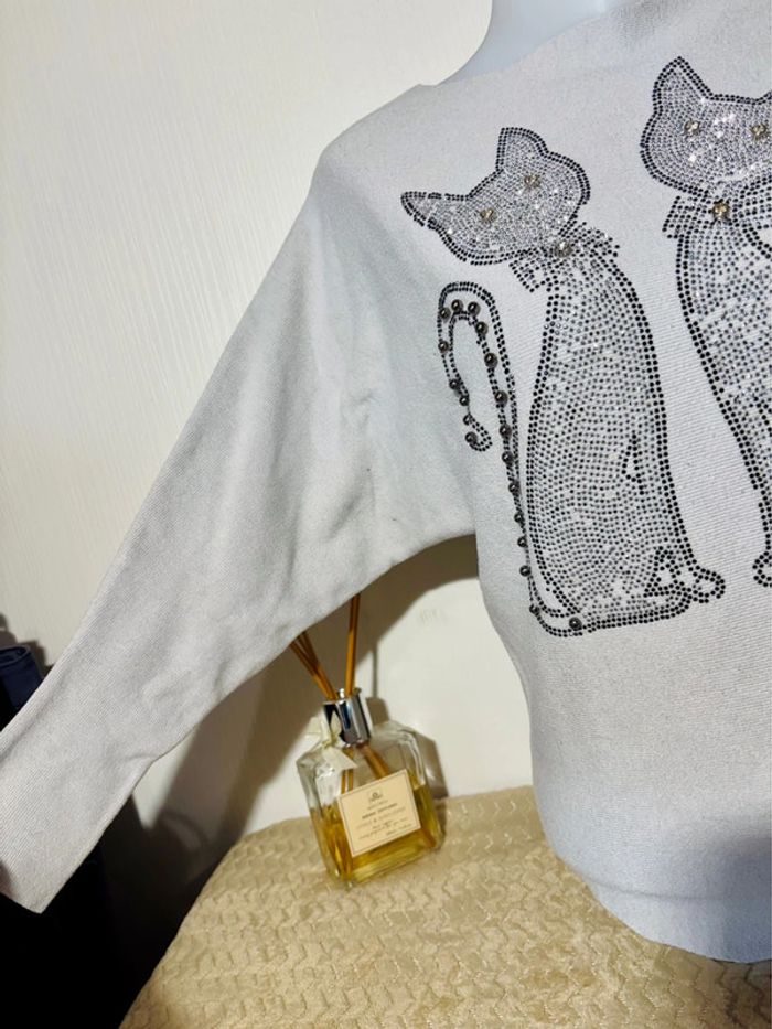 Pull Gris Motif Chats - M&C Paris - taille L • Sweat doux et confortable • Motif chats brillants unique 🖤 • Marque : M&C Paris • Idéal pour un style casual et fun ! #SweatChat #ModeOriginale #LookUnique #VintedFrance #SecondeMain #ModeFemme #StyleFun #Confortable #OOTD #FashionLover #ModeResponsable #VintedAddict #Cocooning