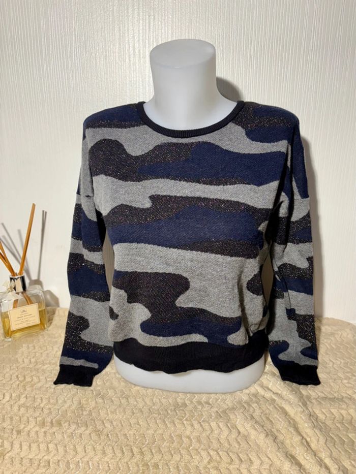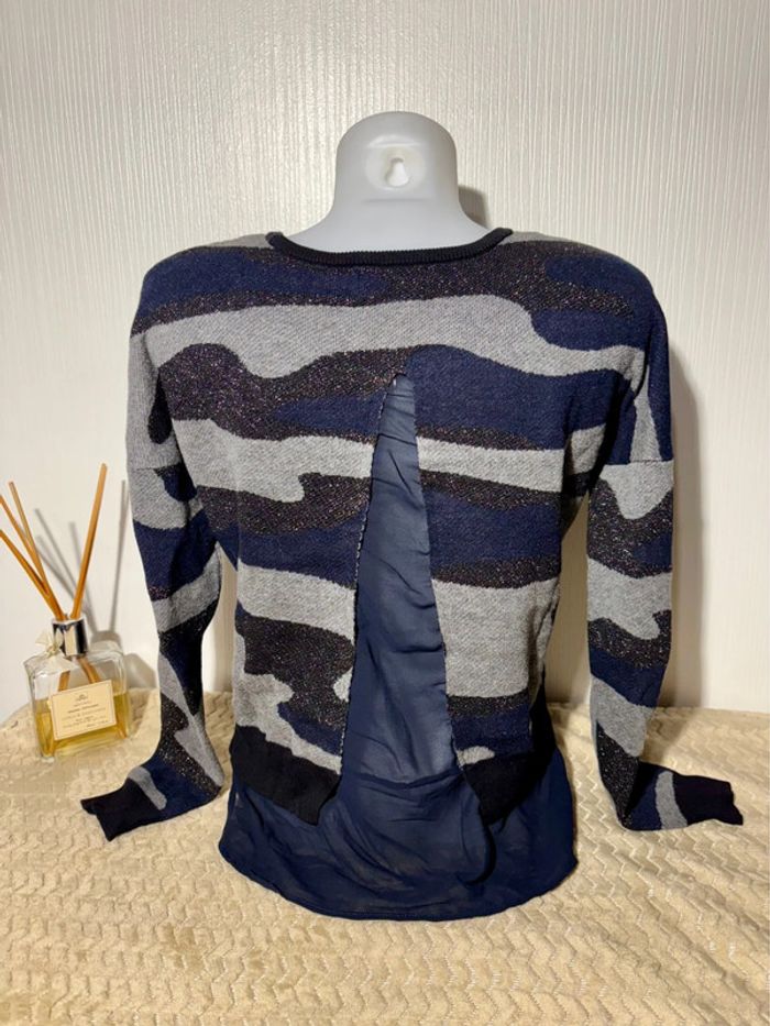 Pull hiver femme ONLY taille S • Taille : S • Marque : ONLY • Composition : 55% Viscose, 40% Coton, 5% Fils métalliques 🌟 • Design : Pull à motif camouflage en bleu, gris et noir, orné de légers fils brillants pour un effet scintillant. Dos ouvert avec une doublure légère en voile pour un look moderne et unique. • Parfait pour : Les journées d’hiver ❄️, un look casual chic ou des soirées entre amis. #PullONLY #CamouflageStyle #ModeHiver #TendancePull #WinterWardrobe #PullOriginal #LookHiver #FashionONLY #HiverStylé #PullBrillant #WinterOutfit #TendanceCamouflage #ModeFemme #PullChaud #Winter2025 #LookChicEtCasual #ONLYFashion