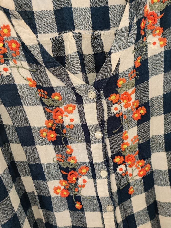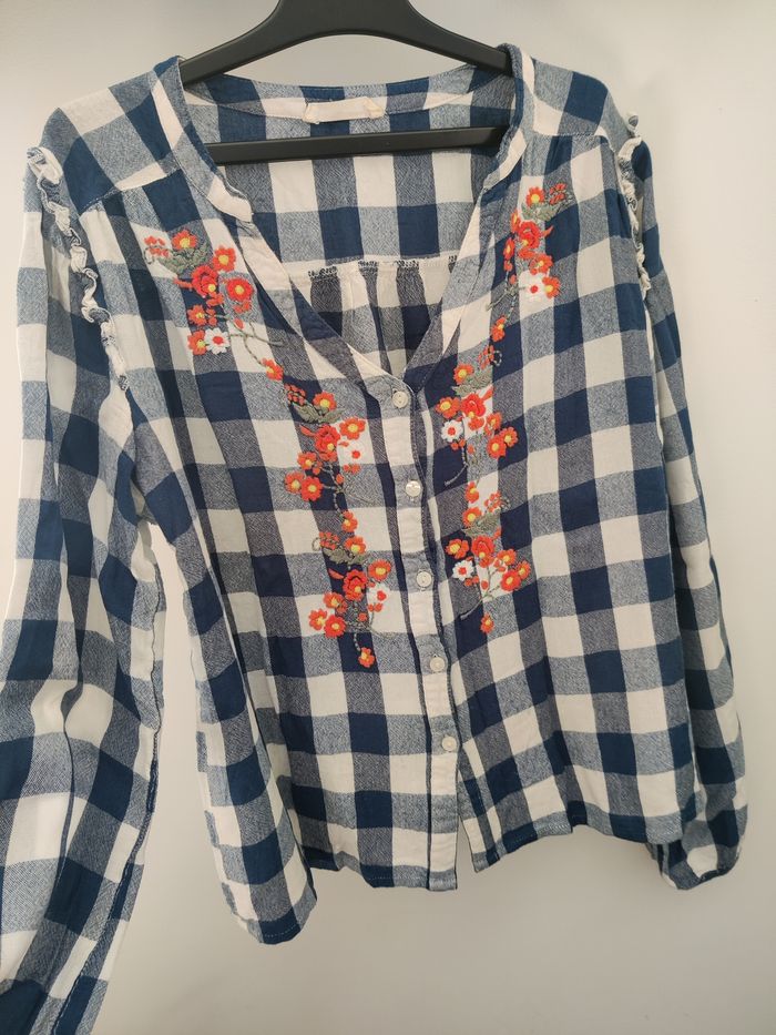 Chemise blouse à carreaux style campagne bohème Cache-cache Taille 34-36 - TT B Etat -bleu blanche - fleurs brodé - look rétro bohème vintage - bouton sur le devant - notée 34 mais convient pour du 36 Je vais remettre pas mal de dispo en 34-36 de mes filles, n'hésitez pas à suivre mes ventes et vous abonnez à mon dressing #hetm #h&m #veste #kiabi #ado #teens #teenagers #vintage #retro #pieddepoule #promod #only #veromoda #jennyfer #tao #tapealoeil #bizzbee #caro86170femme36 #femme36 #caro86170femmeXS #femmeXS - envoi rapide et soigné - d'autres articles disponibles dans mon dressing, n'hésitez pas à faire un lot, je propose des remises