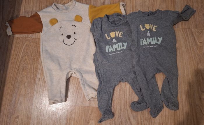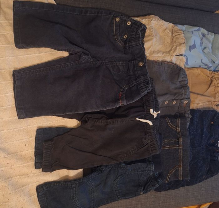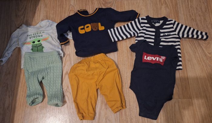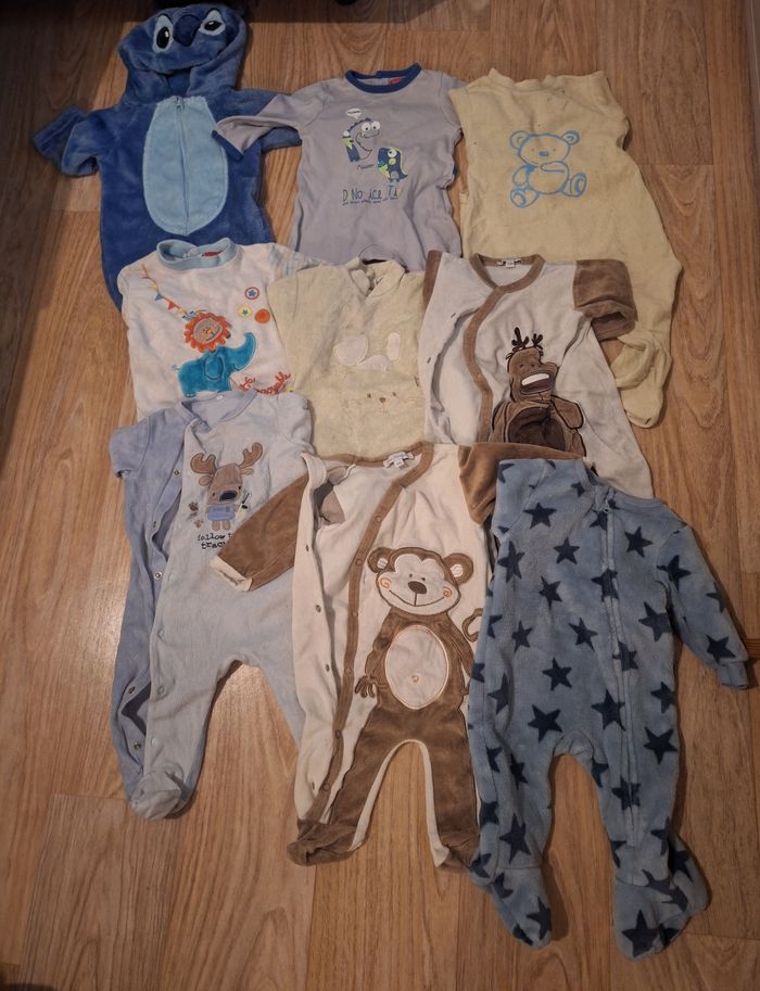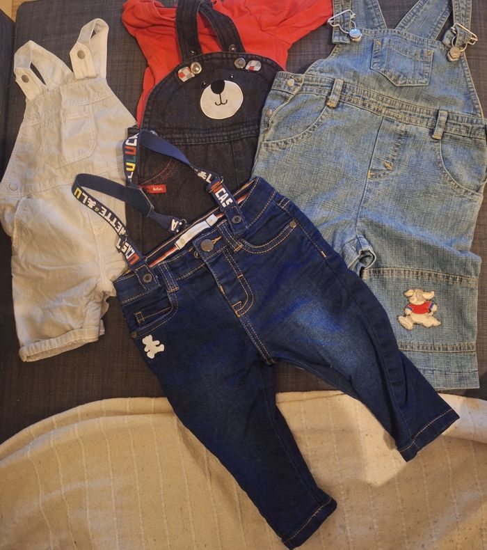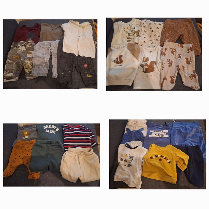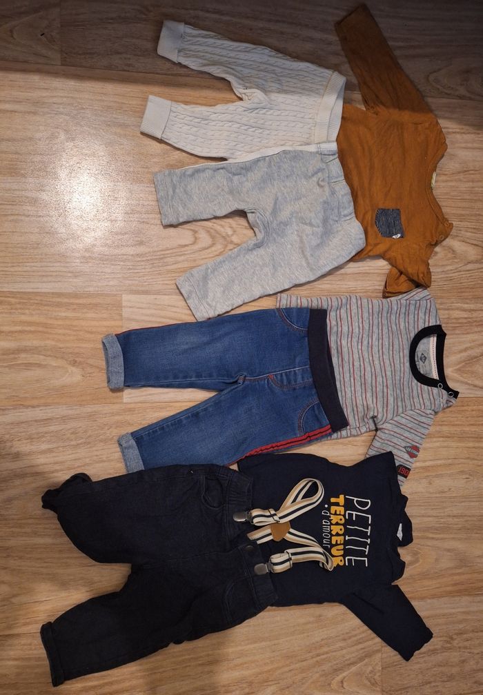 Lots de vêtement toutes marques sans taches en 6 mois 9 Pantalons 5 salopettes 10 T shirt manche longue 11 T shirt manche courtes 15 ensembles 6 vestes 12 pyjamas 1 bodys