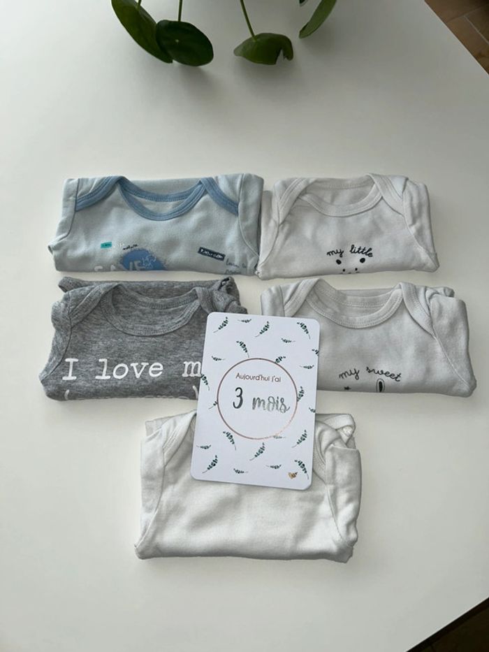 Lot de 5 bodies manches longues taille 3 mois - photo numéro 1