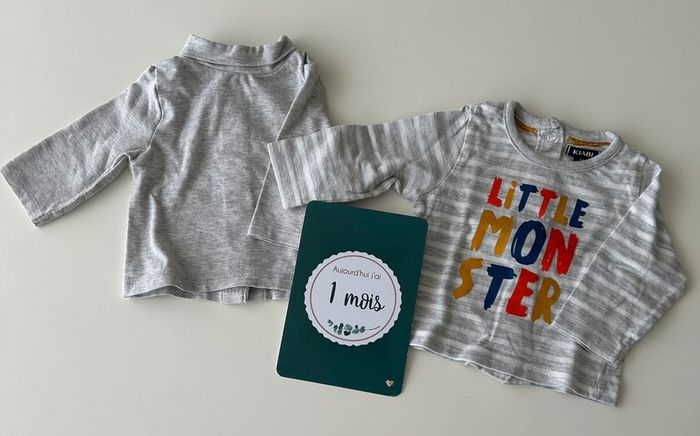 Lot tee-shirt manches longues Kiabi. Très bon état pas de trou ni de tache. Taille 1 mois. Réduction sur les lots.