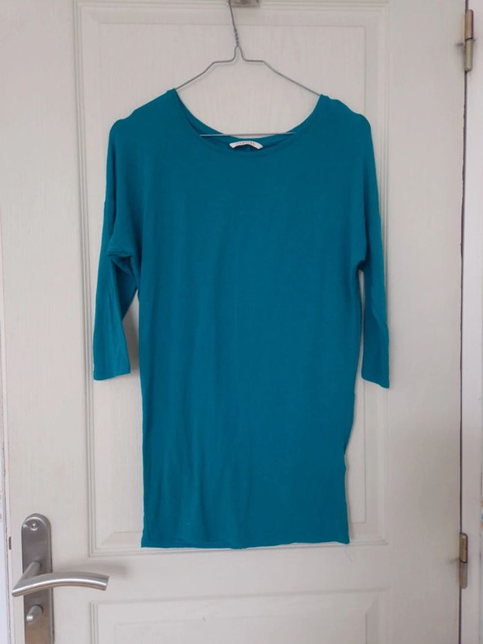 Haut bleu à manches 3/4 femme camaïeu taille XS/34 - photo numéro 2