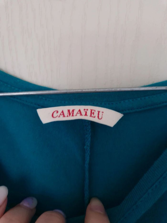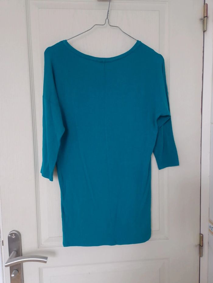 Haut bleu à manches 3/4 femme camaïeu taille XS/34 - photo numéro 6