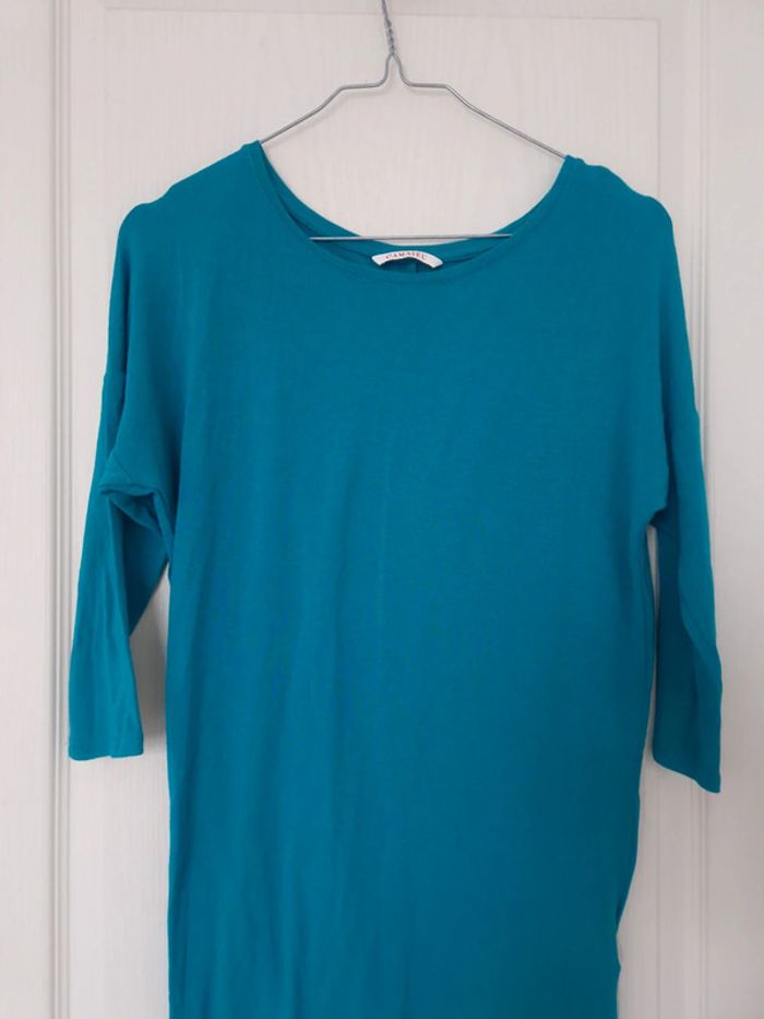 Haut bleu à manches 3/4 femme camaïeu taille XS/34 - photo numéro 3