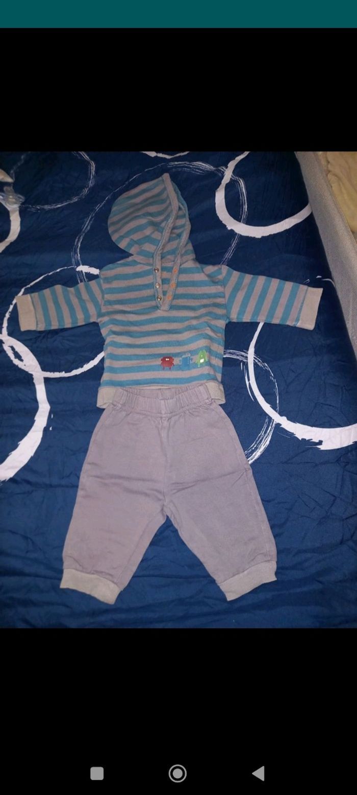 Lot 3 mois 8 ensembles et 1 salopettes la 4eme photo taille 9 mois mais taille très petit