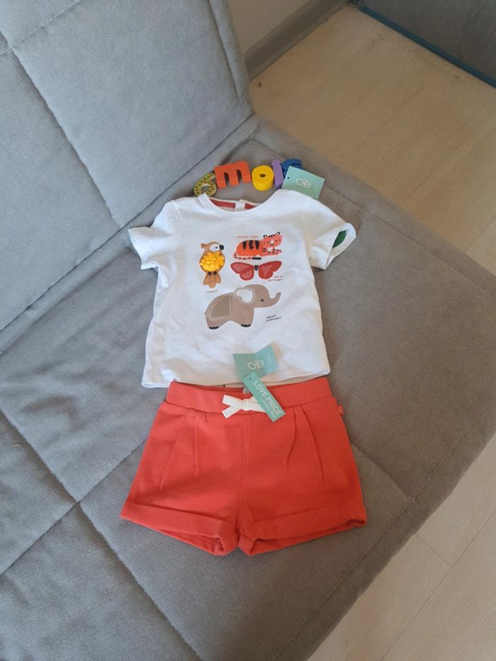 Enseignement Obaïbi taille 6 mois short et tee-shirt neuf avec étiquettes - photo numéro 1
