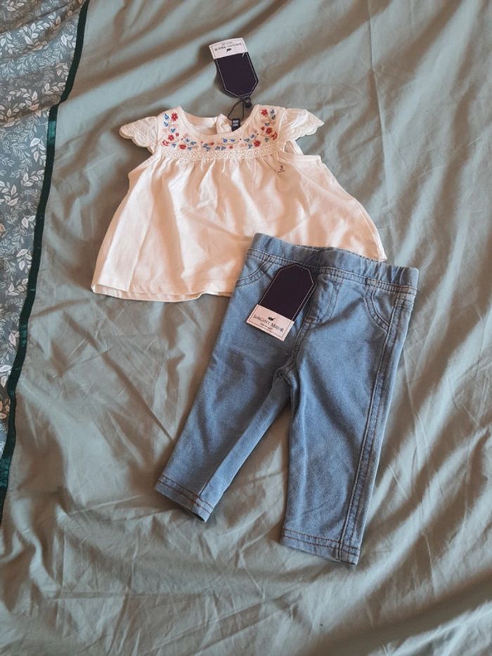 Ensemble Sergent Major tee-shirt avec broderie et legging motif jean taille 3 mois. Neuf avec étiquettes Retrouvez mes autres articles avec le #cyrille90taille3mois 🤑Réductions automatiques sur les lots activées