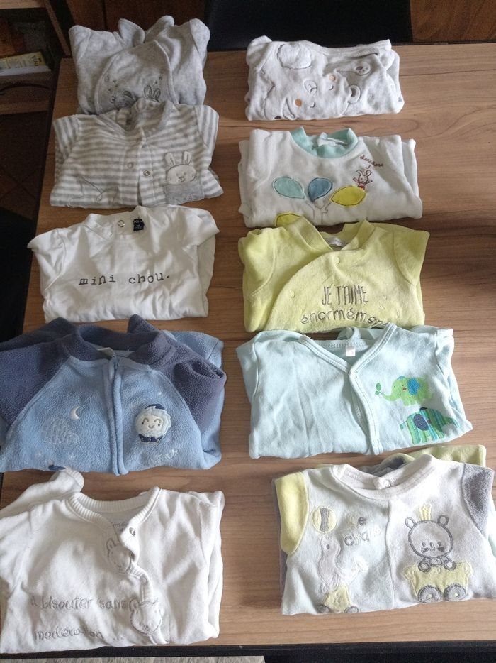 Grot Lot de vêtement bébé, 2 salopette :naissance, 1m 3 pyjamas :3m, 3 gygoteuse :naissance, 12mois et 6mois 3 short:3m,2 brassière :naissance 2 veste :1m,1veste haut laine 10 pyjama :1m,6pyjama :naissance 1 ensemble :3mois,2short :1m, 3 menteau :1,1,3 m, 2 combinaison :3m, 2 débardeur :3m,1 pyjama Noël :t68cm 2 short :6et 9m,2 salopette :3m, 1 haut :3m,2 pantalon jogging :6m Il ya en tout 50 vêtements, sa vous fait 40 vêtement à 1 € et 10 gratuit 😁 il manque quelque photo car pas de place sur l'annonce Prix négociable faite moi des offre c'est avec plaisir pour vos petit bout