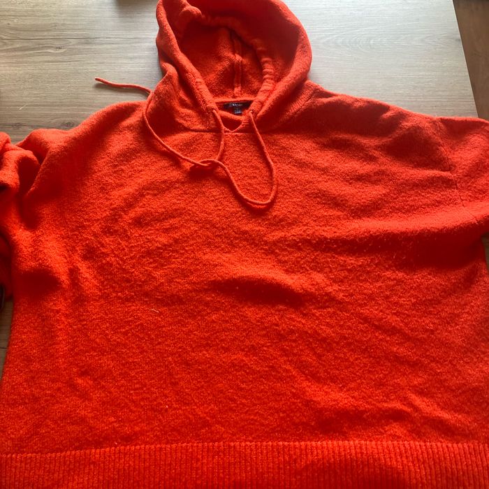 Pull à capuche rouge très bon état longueur 63 cm largeur 66