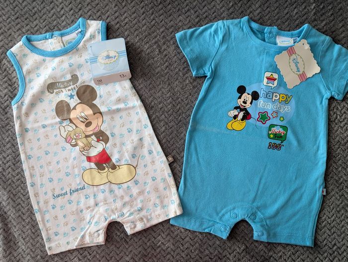 NEUF, lot de 2 combishorts Mickey, 1 mois / 54 cm - photo numéro 1