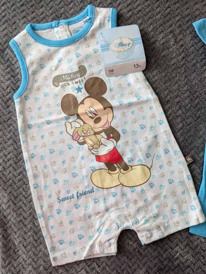 NEUF, lot de 2 combishorts Mickey, 1 mois / 54 cm - photo numéro 3