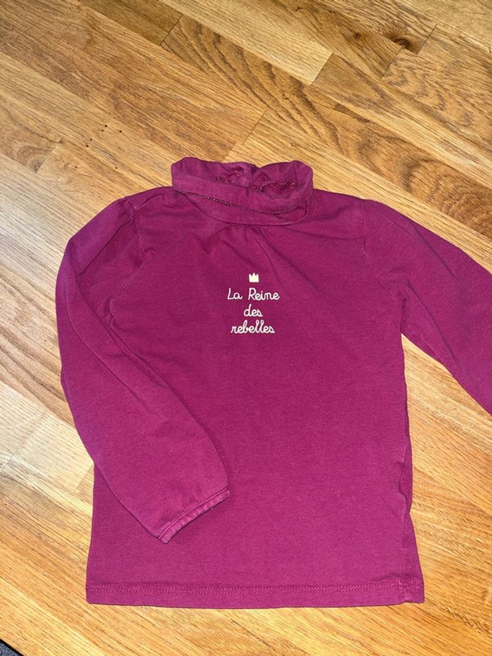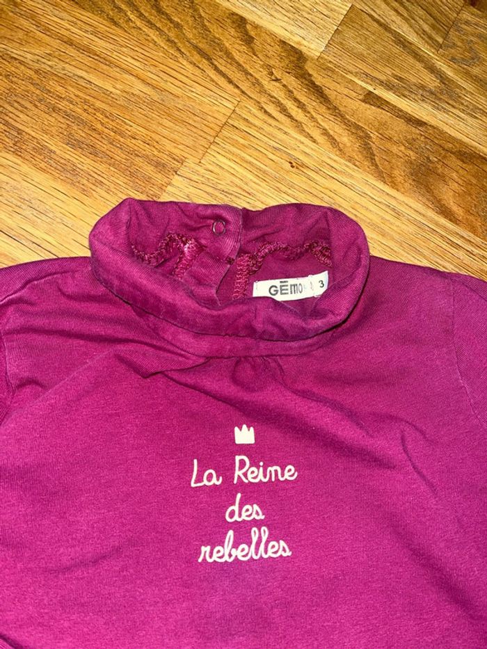 T-shirt manches longues à col roulé Sous pull parfait état Écritures pailletées Marque Gemo Taille 3ans #92cm_sam33antha91 #3ans_sam33antha91