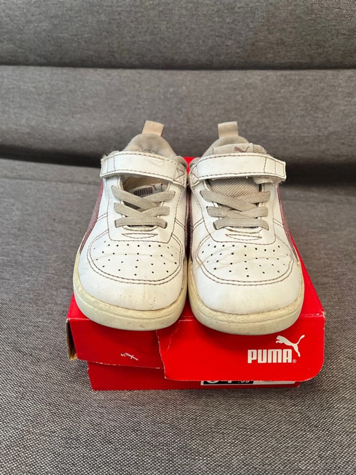Baskets cuir blanches et logo Lilas Scratch et lacets élastiques Marque Puma Taille 24 #24mois_sam33antha91 #92cm_sam33antha91 #3ans_sam33antha91