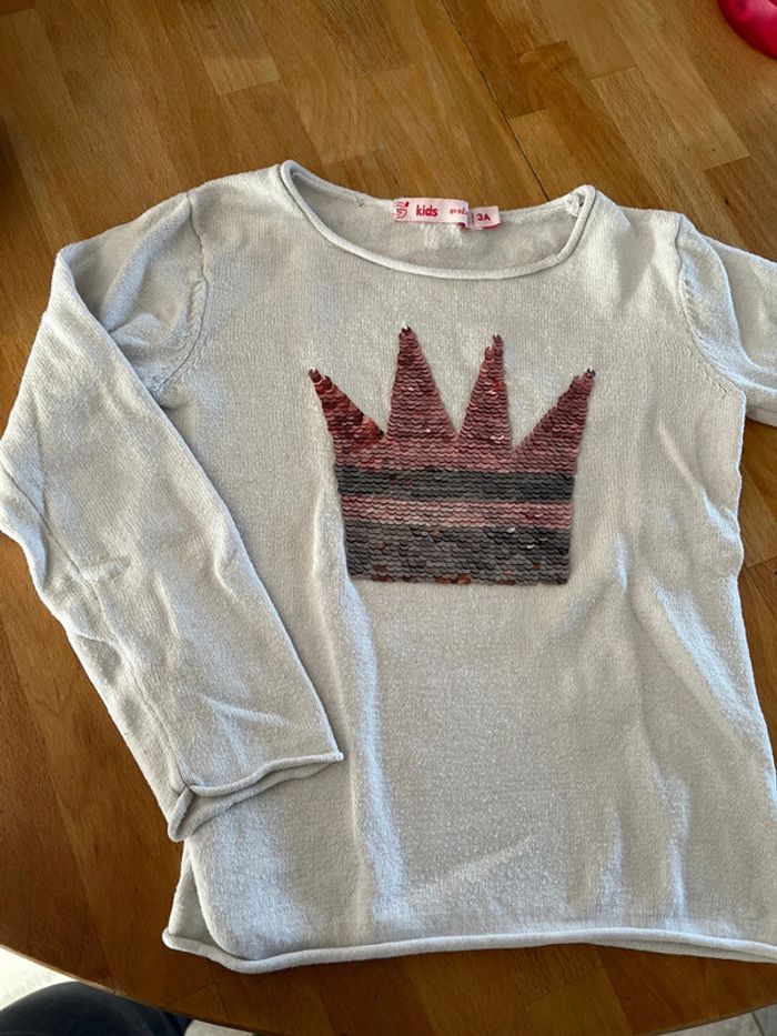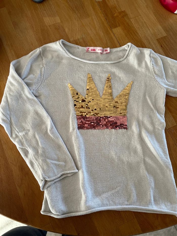 Pull léger couronne en sequins qui changent de couleur 👑 Marque Gemo kids Taille 3 ans #92cm_sam33antha91 #3ans_sam33antha91