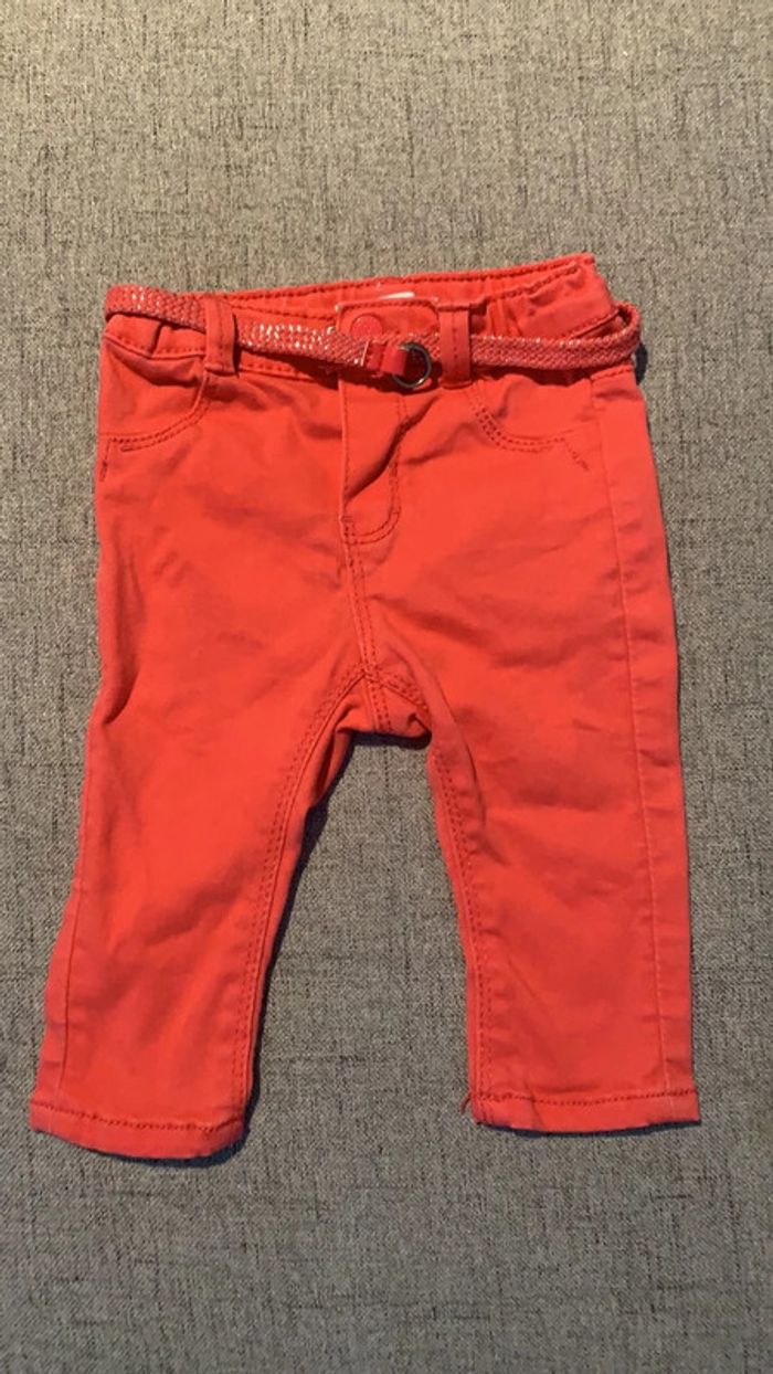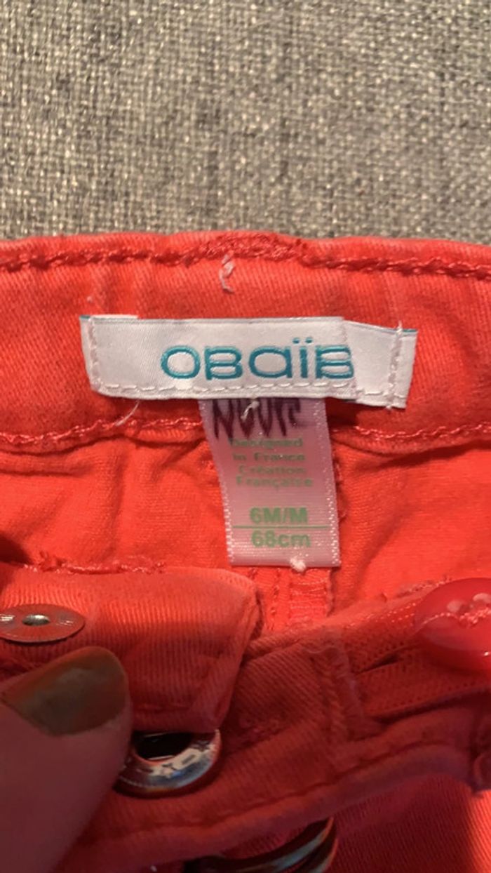 jeans corail avec petite ceinture comme neuf marque Obaïbi taille 6mois #6mois_sam33antha91