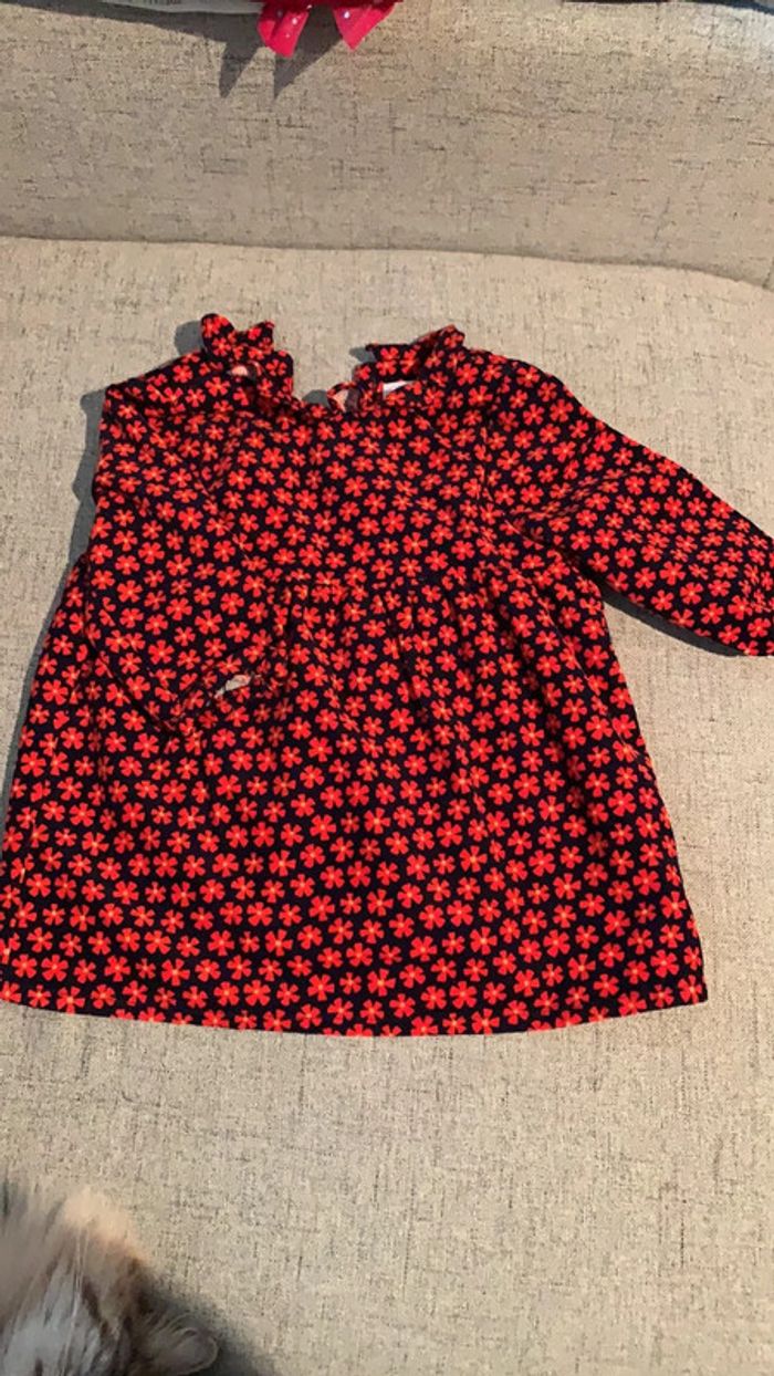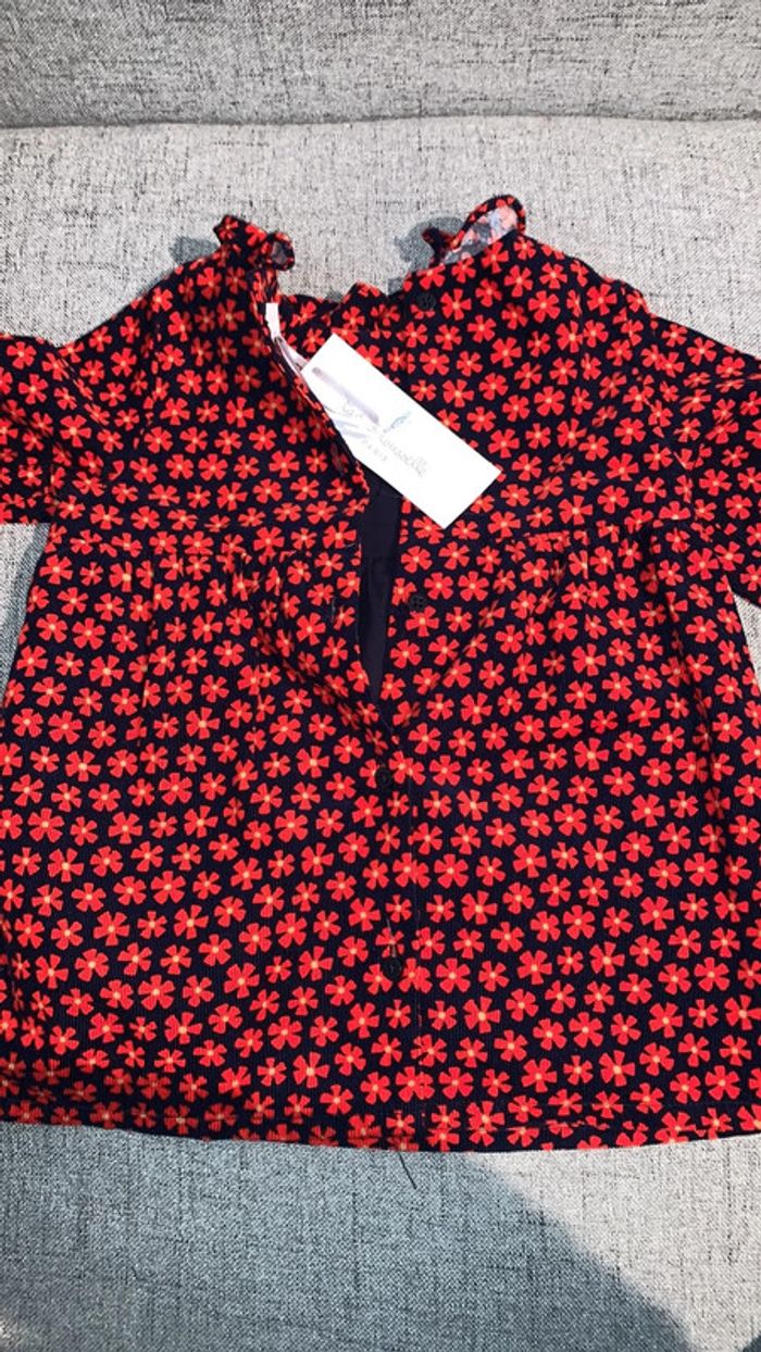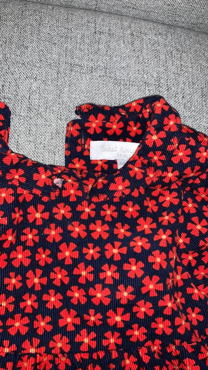 Robe velour doublée bleu marine et fleurs rouges NEUF avec étiquette taille 6mois #6mois_sam33antha91 marque cadet rousselle
