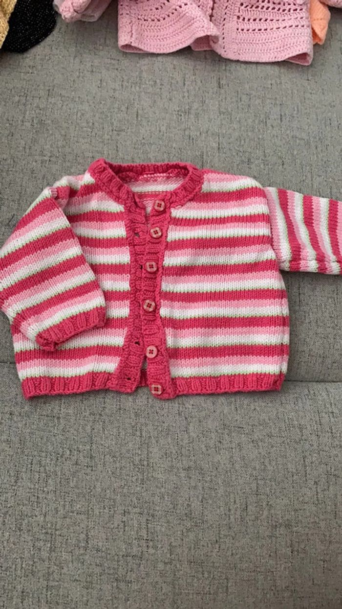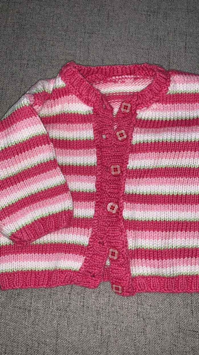 gilet bébé fille maille - rose bonbon rayé vert/blanc/rose pâle -> couleur charlotte aux fraises très bon état sans marque taille 3 mois #3mois_sam33antha91