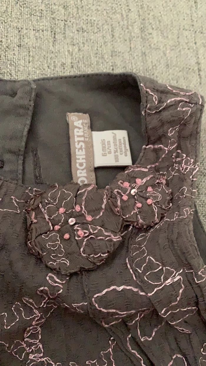 robe bébé fille mi saison - doublée (voir photo 3) couleur gris/taupe et rose pâle très bon état - pas de trou ni tache marque orchestra taille 6 mois #6mois_sam33antha91