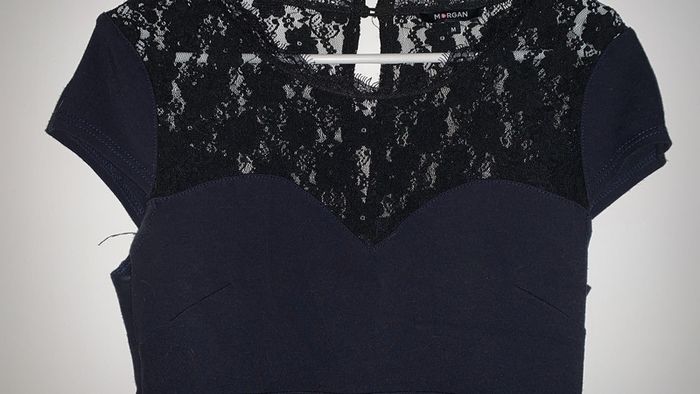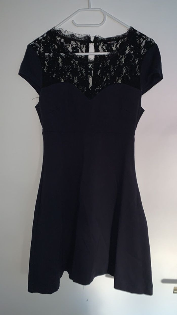 superbe robe bleu marine et details dentelle encolure et dos très bon état - très peu portée /!\ assez épaisse marque MORGAN taille M - 38