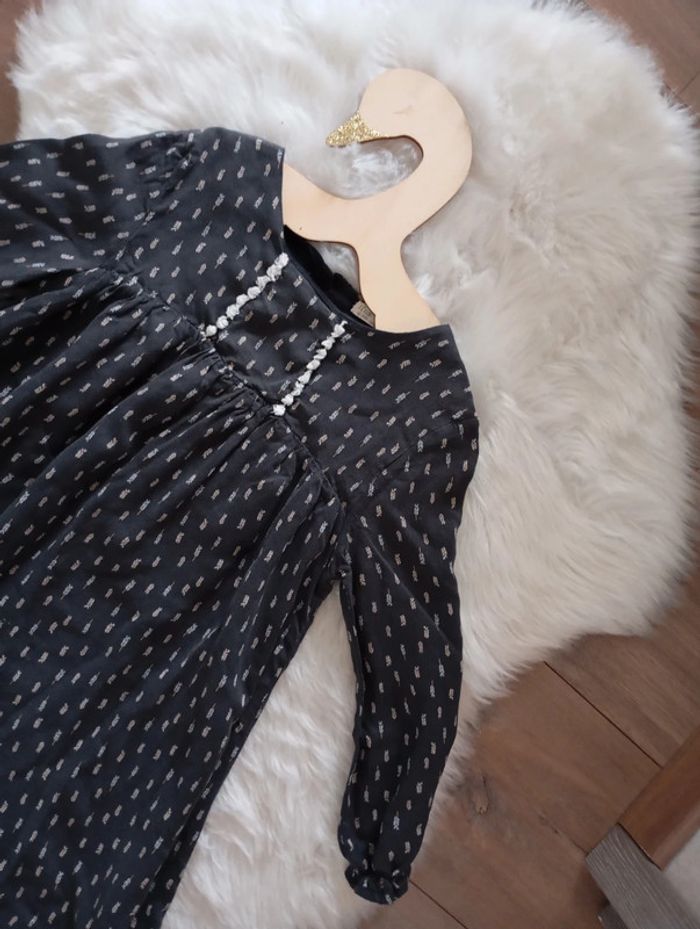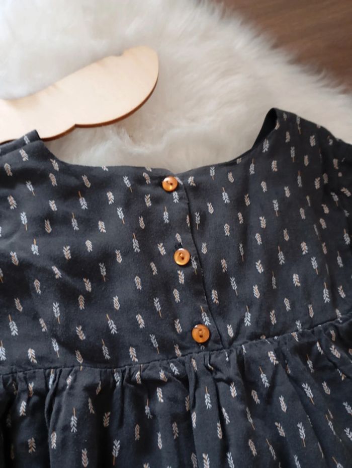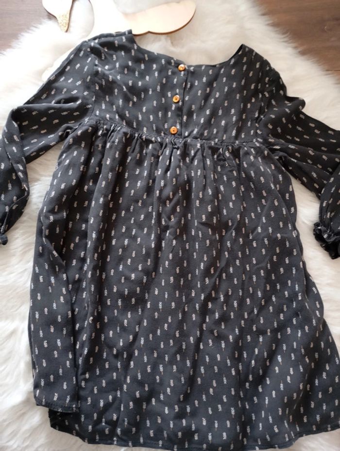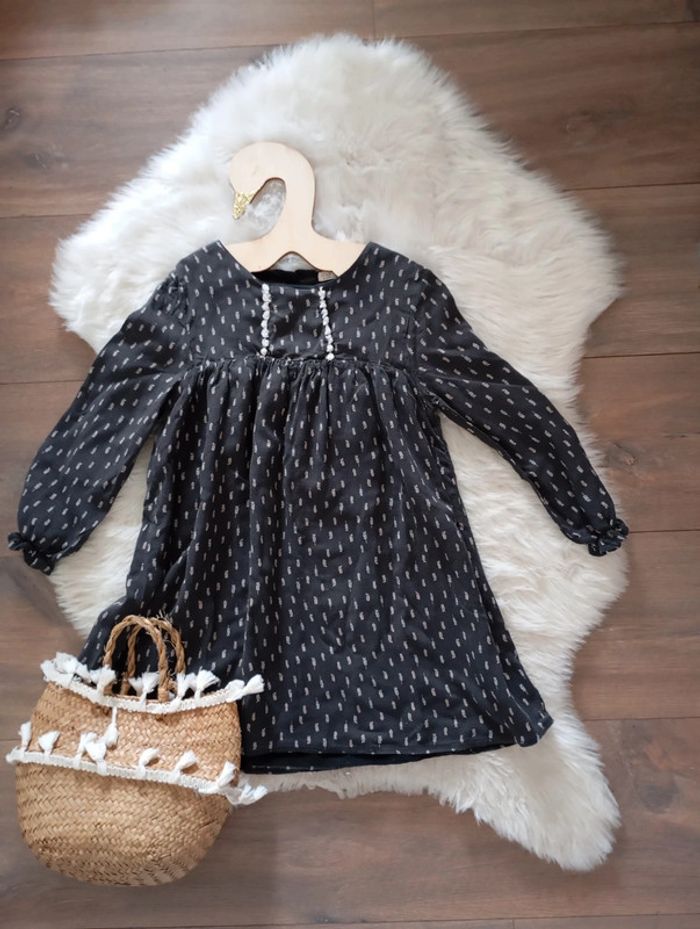 Robe chic manche longue gris foncé proche noir imprimé plume d indienne 😅 Idéal pour rentrée scolaire esprit un peu bohème #littlecigogne #lckids #izianaquatreans